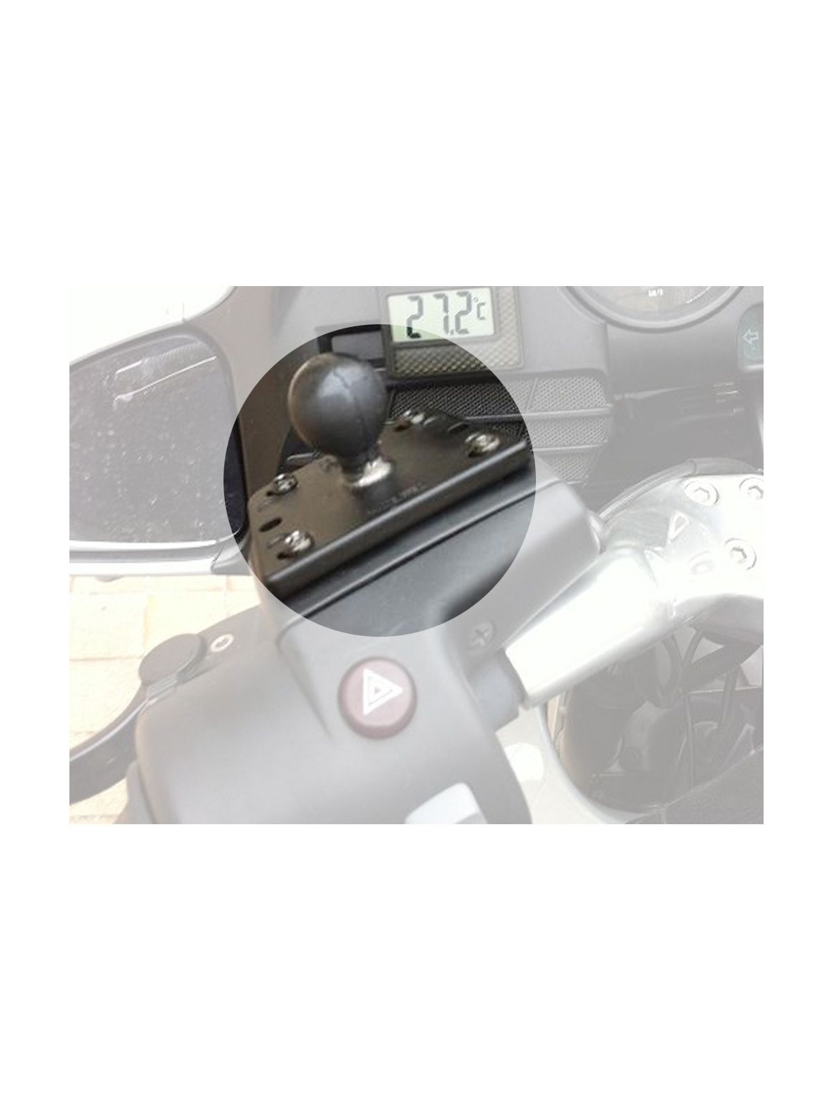 This RAM MOUNT base fits cleanly over your existing brake/clutch reservoir cover with the 1-inch ball centered. Made of die cast aluminum with an over molded rubber ball, both form and function are unsurpassed. Installation is simple and all necessary hardware is included.