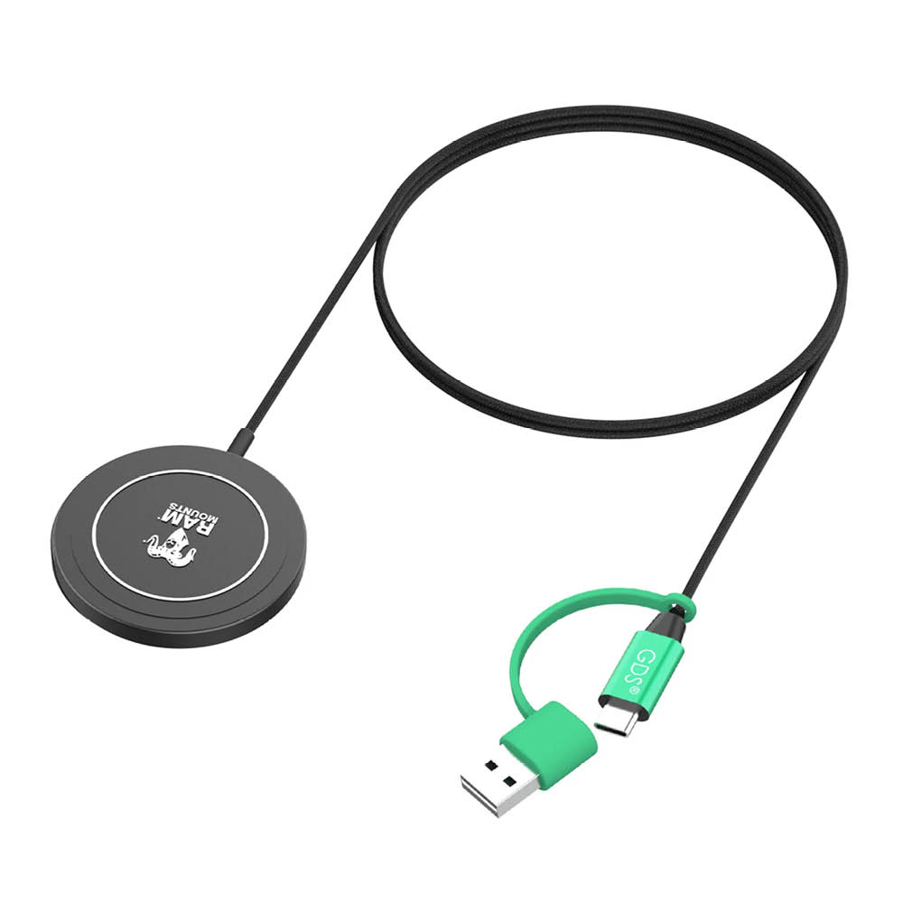RAM Mounts Qi2 Wireless Charger Power Delivery - 15 Watt - MagSafe Compatible - USB-C & USB-A Connector
