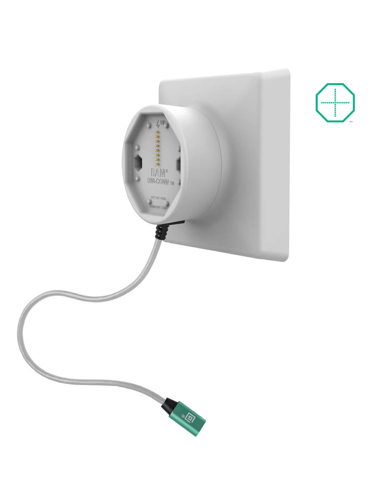 Die RAM Mounts GDS Uni-Conn Dockingstation ist eine mit Strom versorgte Halterung, die mit 100x100 mm und 75x75 mm VESA-Lochmustern ausgestattet ist.