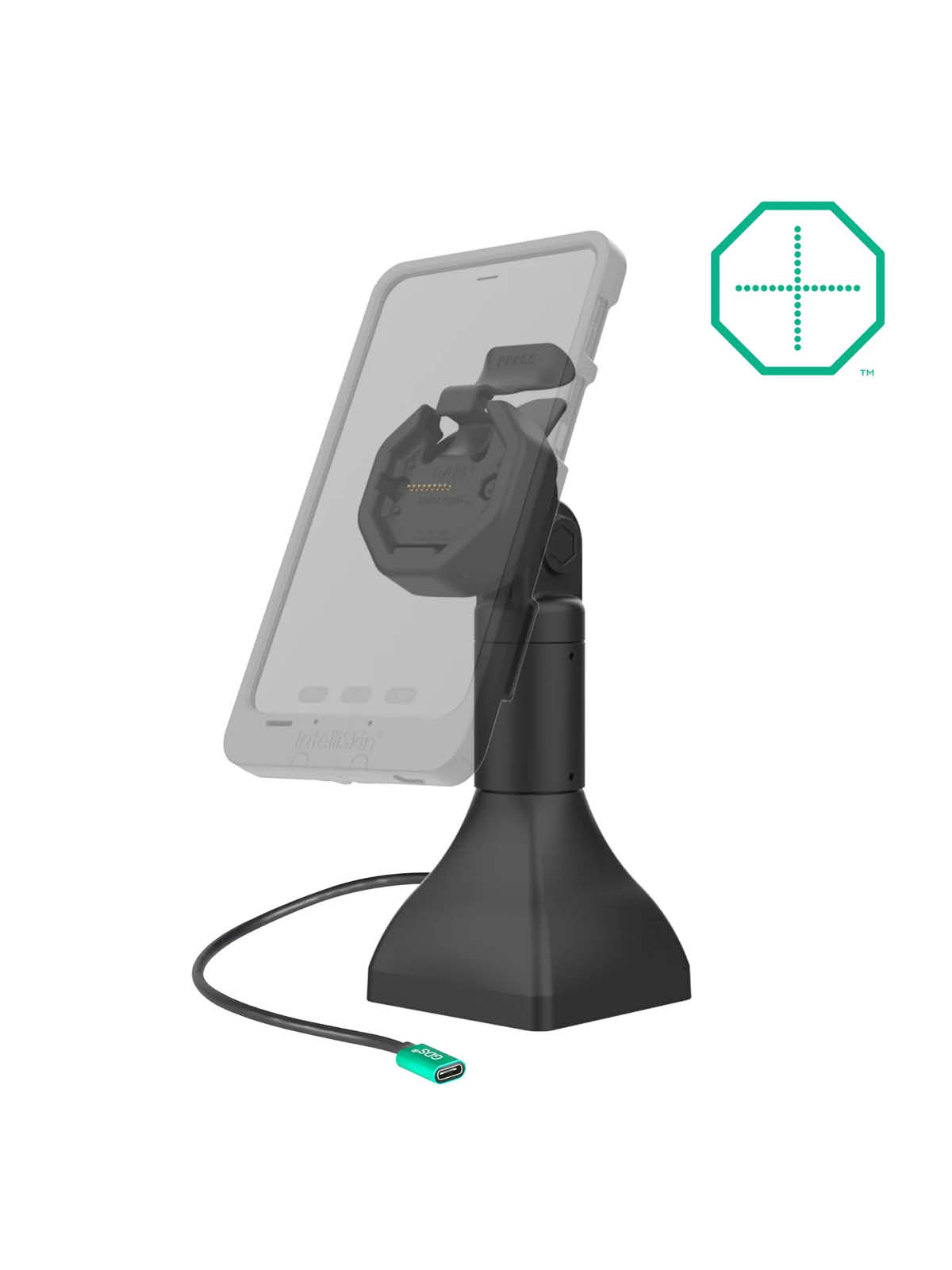 Die RAM Mounts GDS Uni-Conn Stand-Dockingstation ist eine freistehende 7 Zoll Dockingstation und für Geräte in einer IntelliSkin Thin-Case mit rückseitigen Pogo-Pads geeignet.
