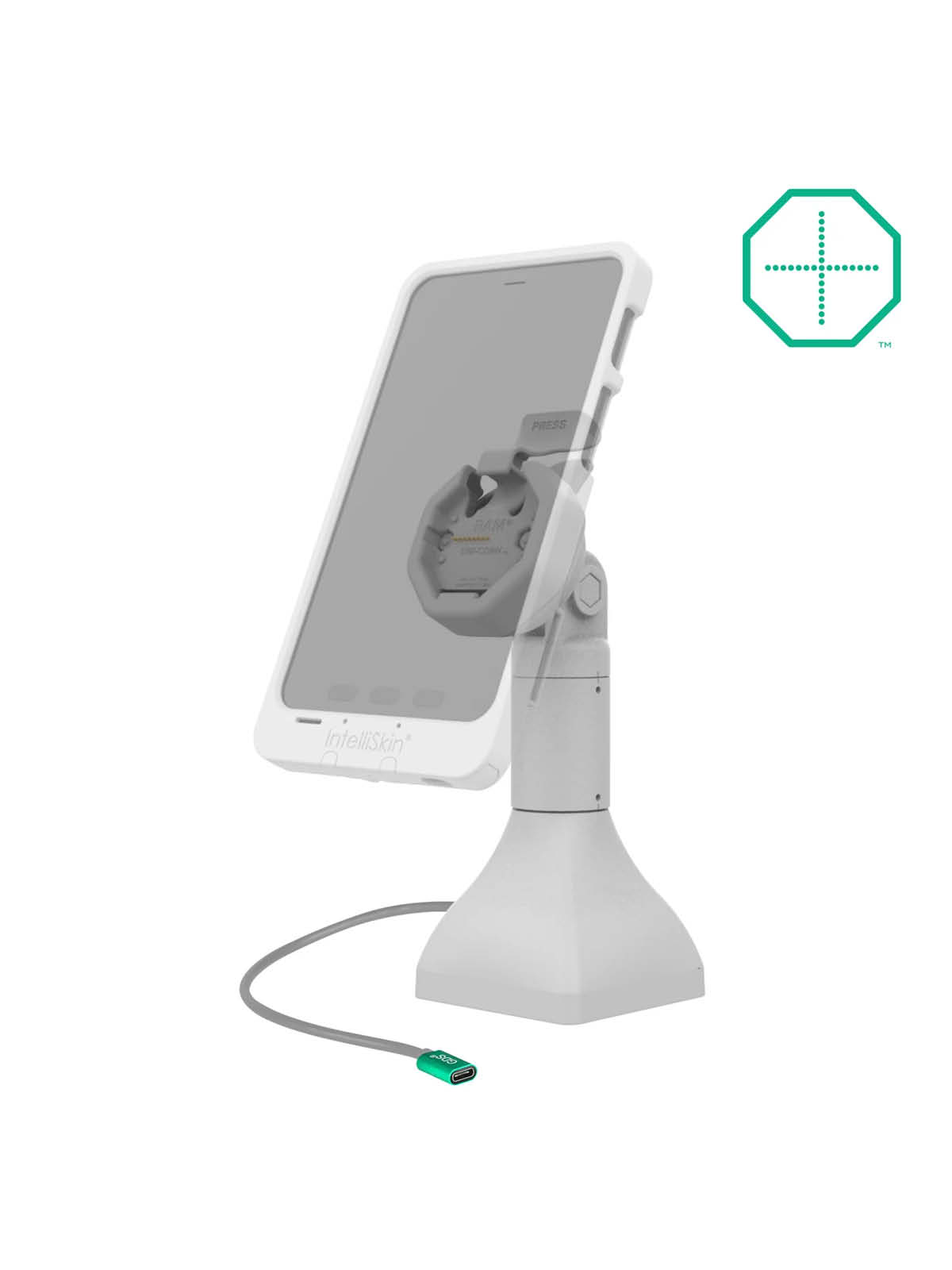 Die RAM Mounts GDS Uni-Conn Stand-Dockingstation ist eine freistehende 7 Zoll Dockingstation und für Geräte in einer IntelliSkin Thin-Case mit rückseitigen Pogo-Pads geeignet.