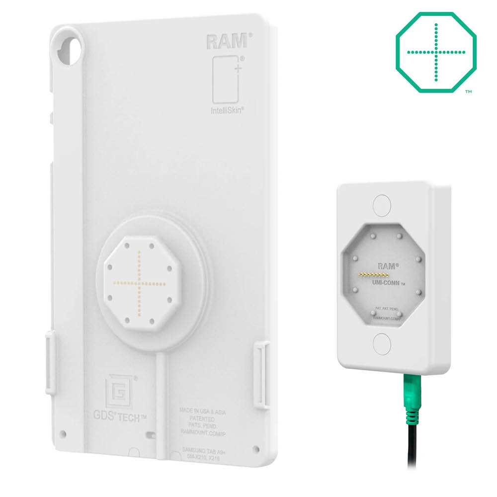 The GDS® Uni-Conn™ Powered Wall Dock with USB-C - Gray (RAM-GDS-DOCK-W4-CU-GRY) is a versatile wall docking solution for devices enclosed in an IntelliSkin® Thin-Case™ with Rear Pogo Pads. Easily dock and undock your device with the assistance of the magnetic attachment mechanism.