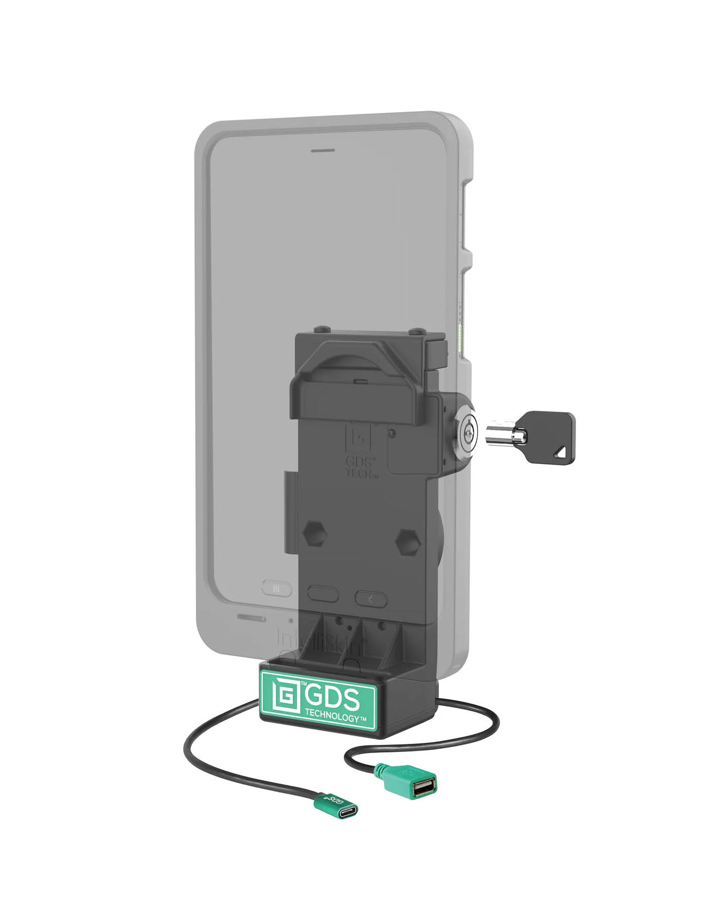 Für die Dockingstation muss der GDS Uni-Conn Adapter (RAM-GDS-U1U) auf der vorgesehenen IntelliSkin-Schutzhülle montiert sein.