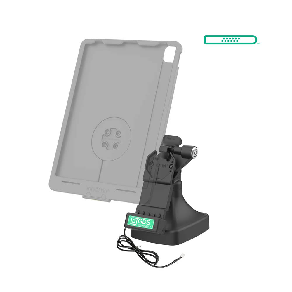 Die RAM Mounts GDS Uni-Conn Stand-Dockingstation mit Schlüsselverriegelung (Rechts) ist eine freistehende Dockingstation und für Geräte in einer IntelliSkin Next-Gen, IntelliSkin Hard Case oder IntelliSkin Thin-Case mit montierten GDS Uni-Conn Adapter geeignet.