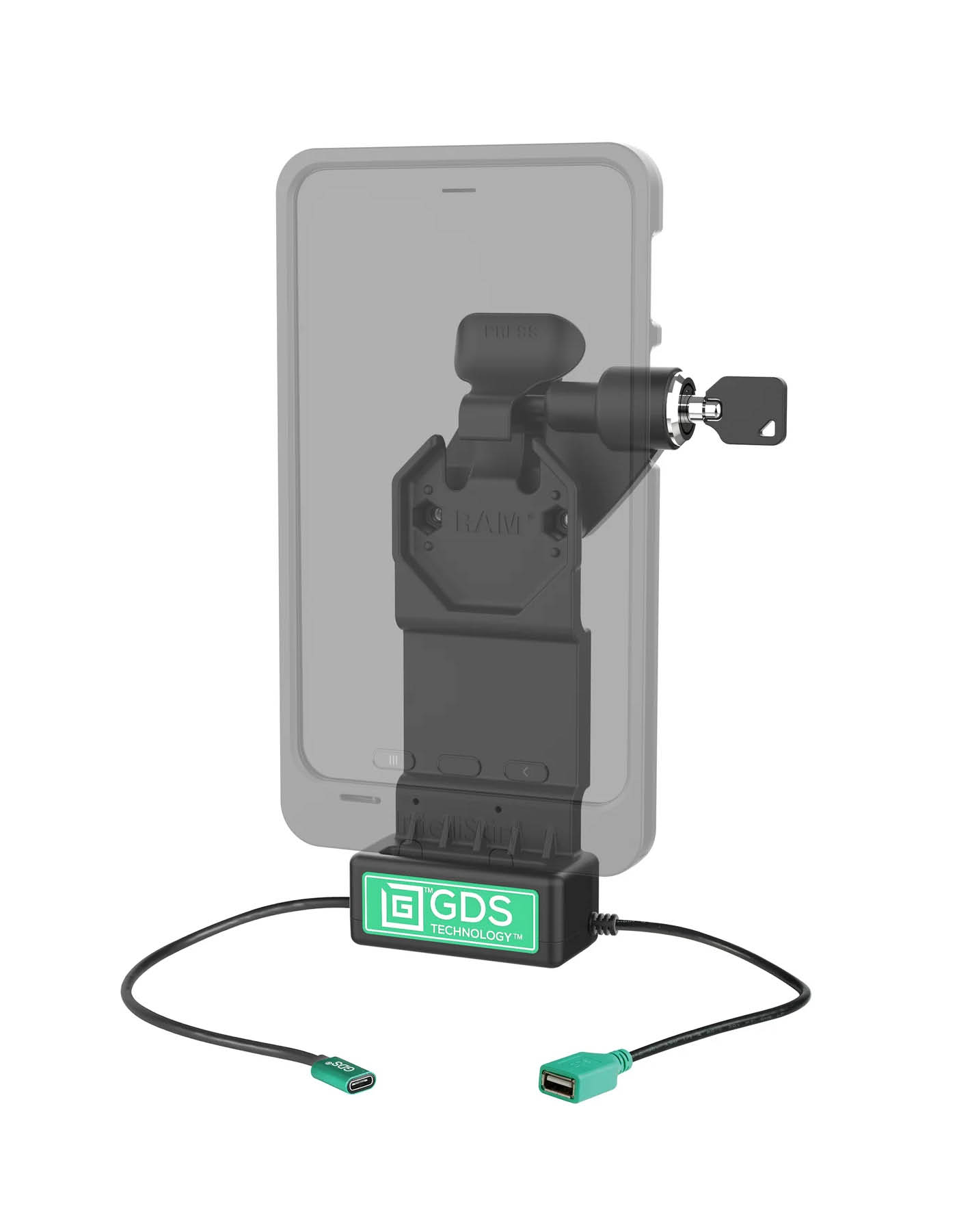 For the docking station to function, the GDS Uni-Conn adapter (RAM-GDS-U1U) must be mounted on the designated IntelliSkin protective case.
