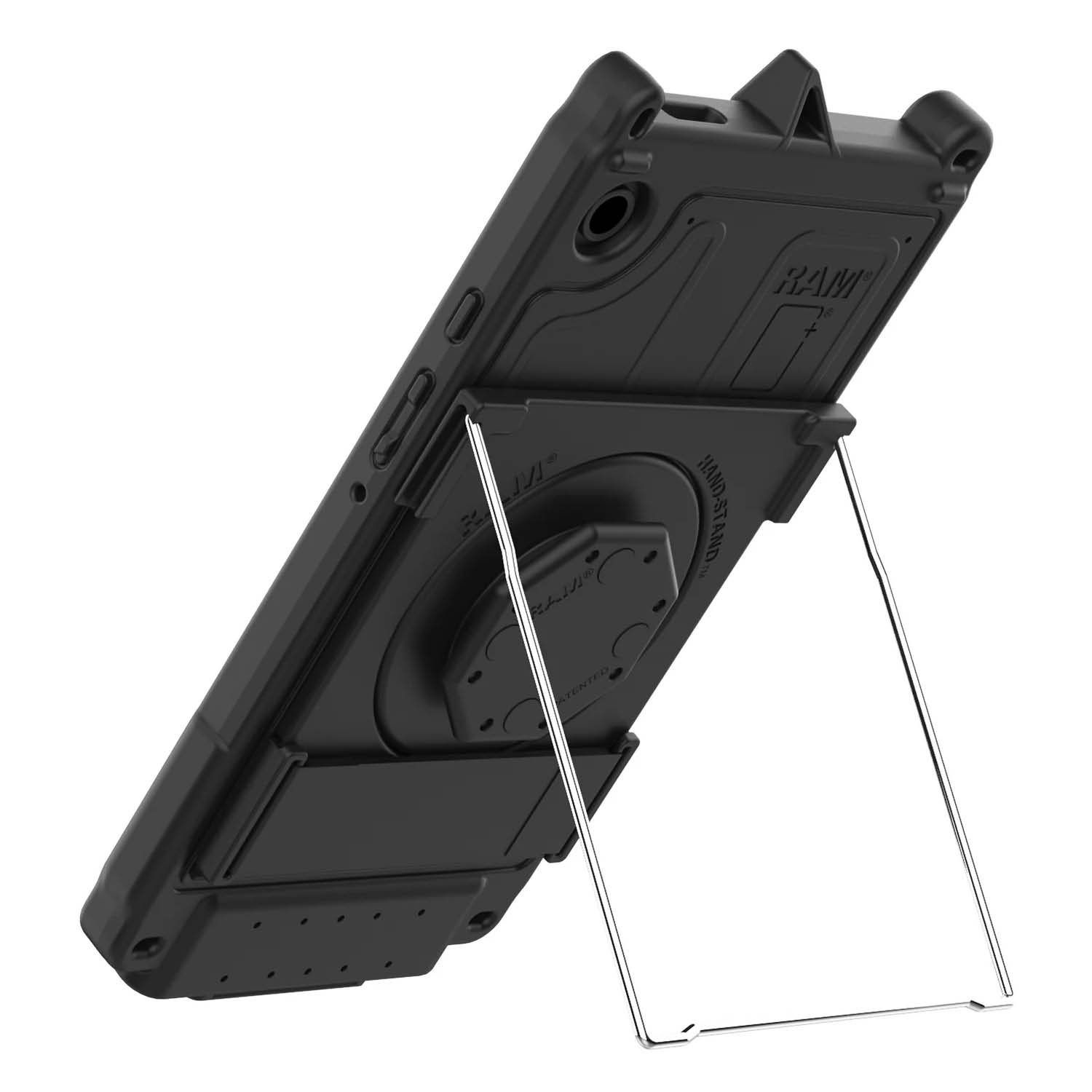 Der Hand-Stand wird unterhalb des Uni-Conn-Adapters montiert, bevor das Tablet in die IntelliSkin Schutzhülle eingesetzt wird.