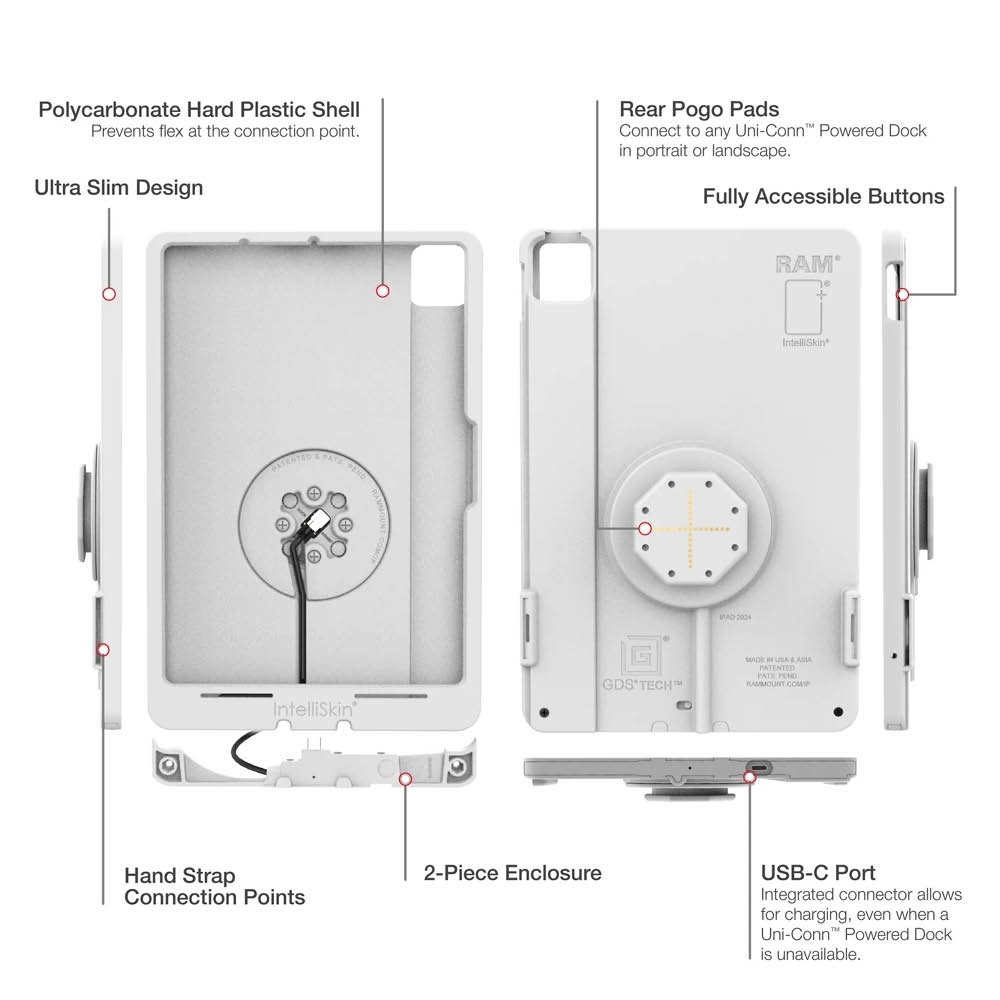 Diese RAM Mounts GDS IntelliSkin Thin-Case Ladeschutzhülle ist eine schlanke, robuste Schutzhülle für das Apple iPad Air 11 (M2 & M3) mit rückseitigen Pogo-Pads – entwickelt für die GDS Uni-Conn Dockingplattform.