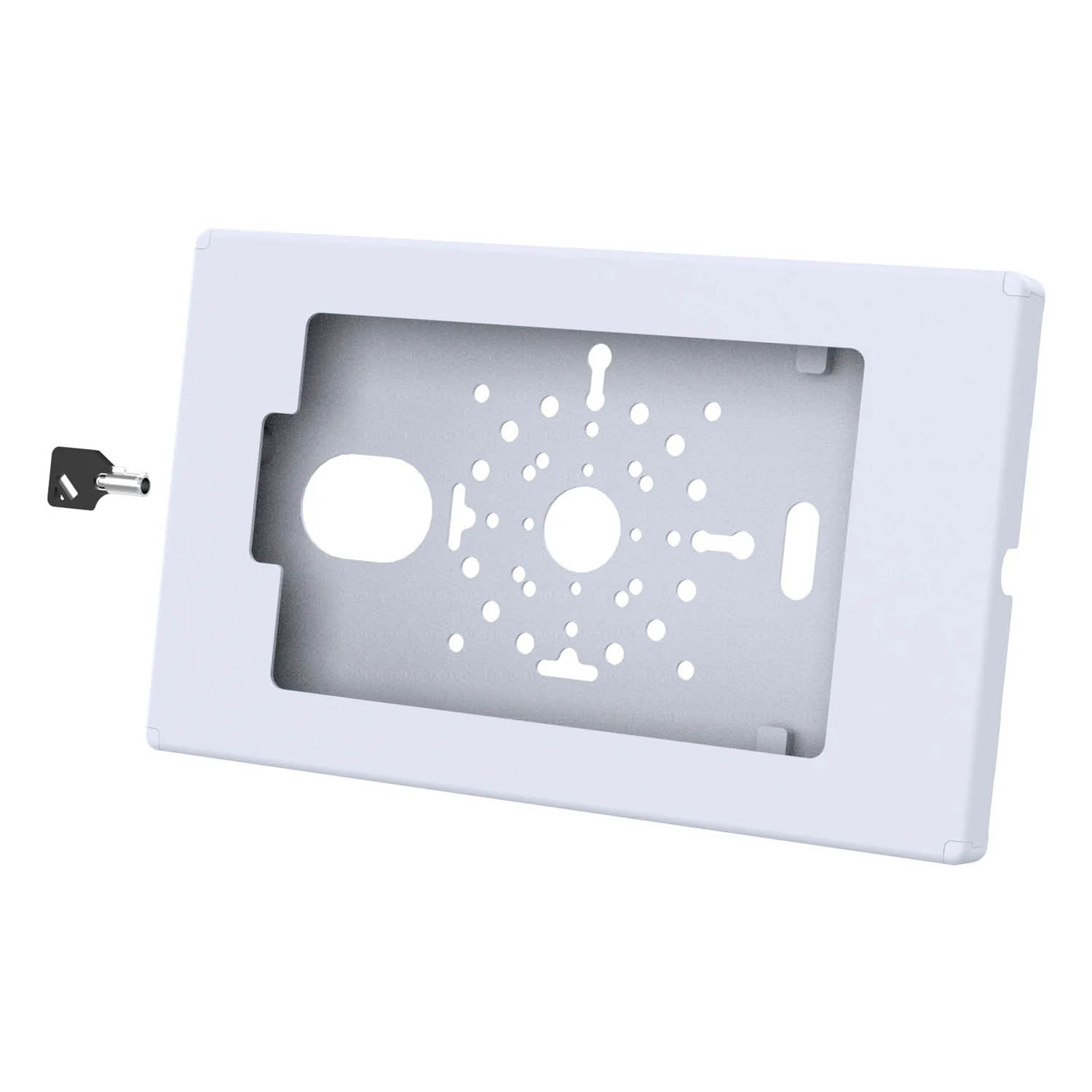 The smooth gray finish not only blends well into professional and industrial settings but also adds a clean, modern aesthetic. The enclosure features versatile mounting options with integrated hole patterns for flush mounting, compatibility with RAM® double ball mounts, or 75x75mm VESA stands.