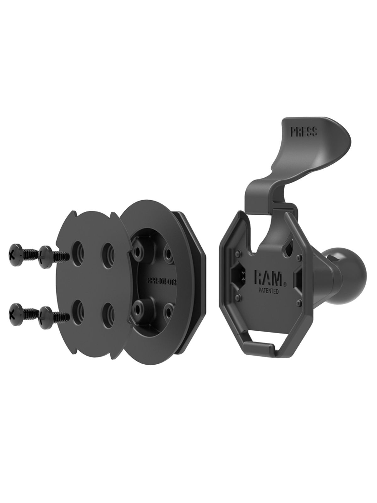 RAM Mounts Quick Release Adapter für Apple iPads in Otterbox uniVERSE Gehäusen/Hüllen inkl. Diamond-Basisplatte (Trapez) mit B-Kugel (1 Zoll). Dieser Adapter ermöglicht eine schnelle Entnahme bzw. schnelle Fixierung der Apple iPad Tablets. Die Diamond-Basisplatte bietet Anschluss zu diversen Kompletthalterungen oder Verbindungsarmen mit entsprechender Aufnahme.