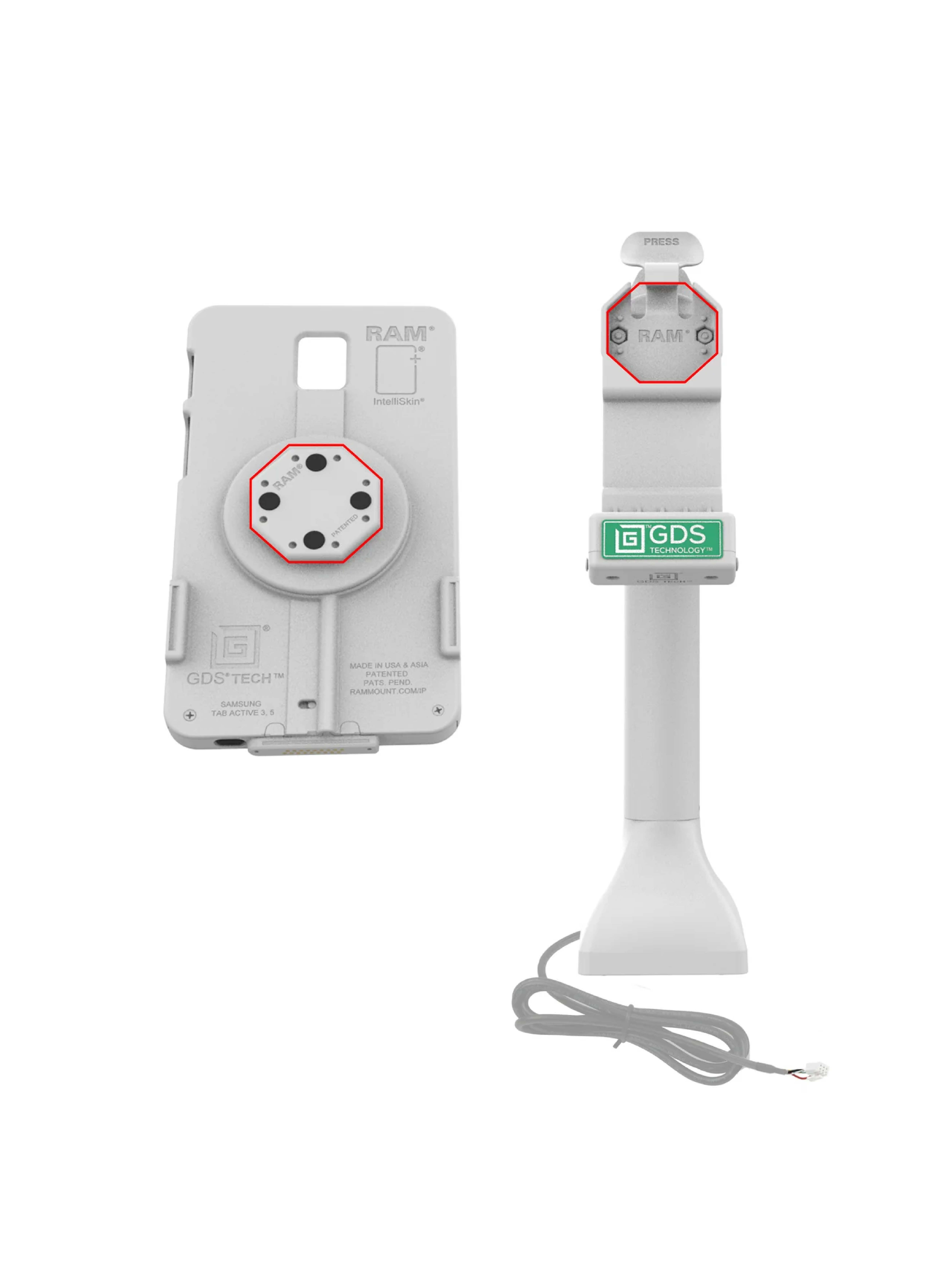 Für die Dockingstation muss der GDS Uni-Conn Adapter (RAM-GDS-U1U) auf der vorgesehenen IntelliSkin-Schutzhülle montiert sein.