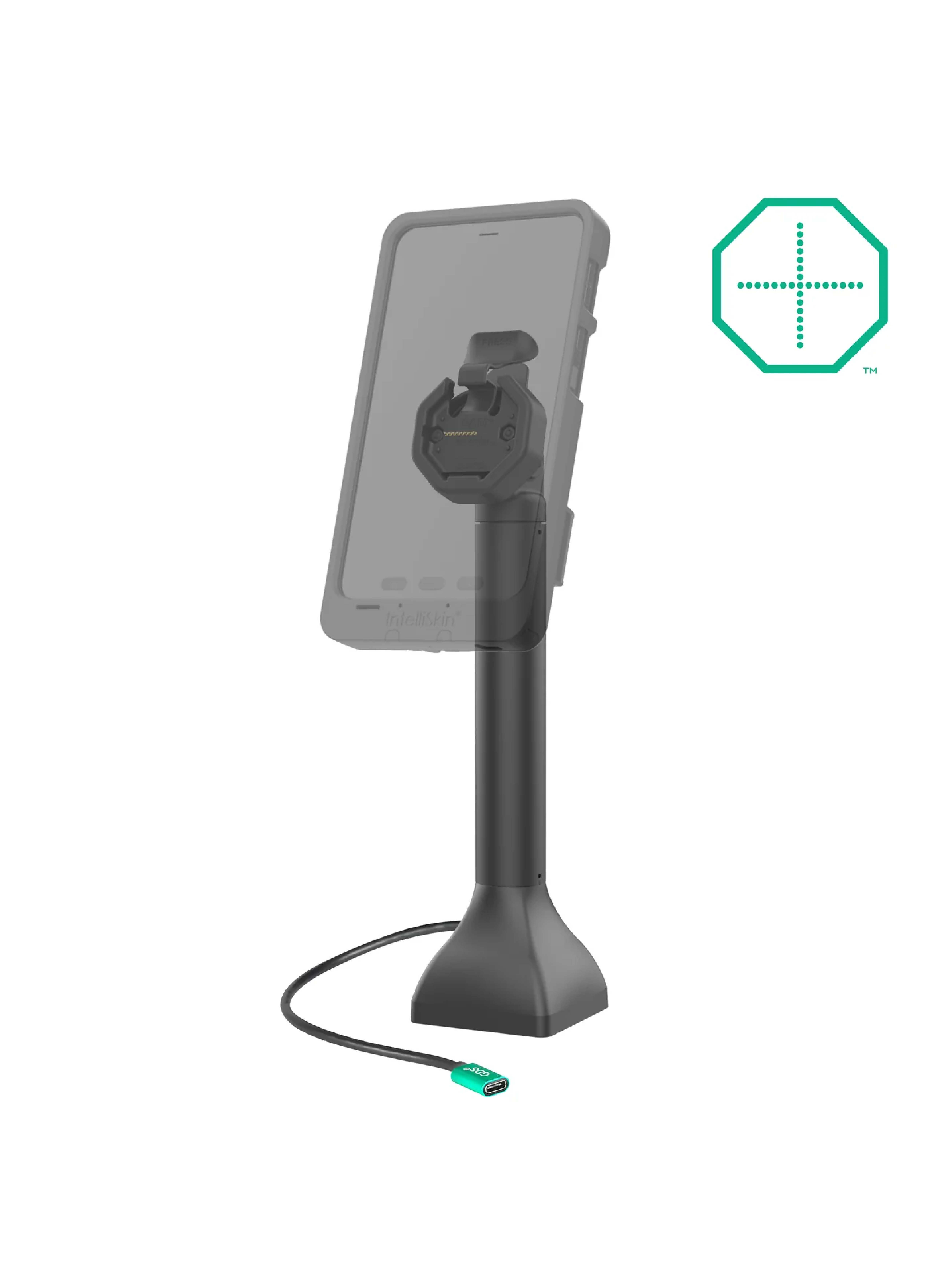 Die RAM Mounts GDS Uni-Conn Stand-Dockingstation (14 Zoll) ist eine freistehende Dockingstation und für Geräte in einer IntelliSkin Thin-Case mit rückseitigen Pogo-Pads geeignet.