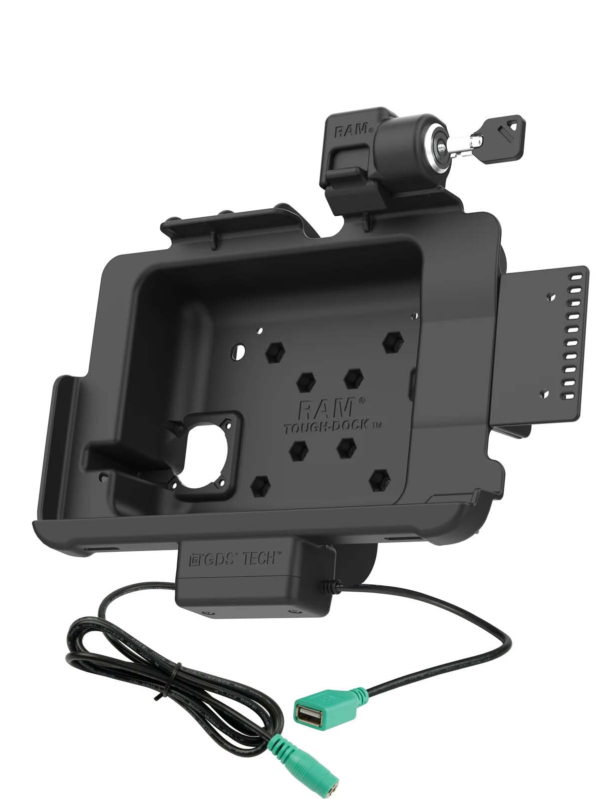 RAM Mounts Form-Fit Halteschale (Schlüsselverriegelung) für Zebra ET40 & ET45 (10“) Tablets - In Rugged Boot - 5.5mm DC & USB-A-Anschluss