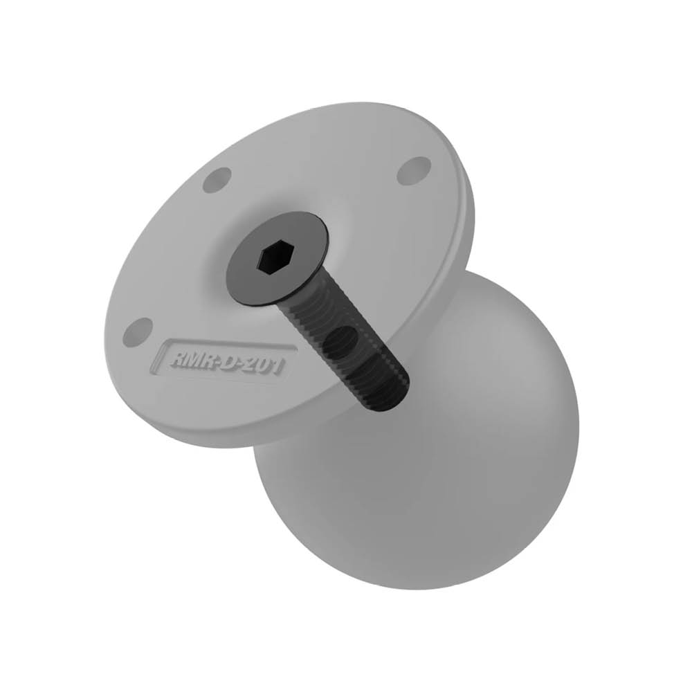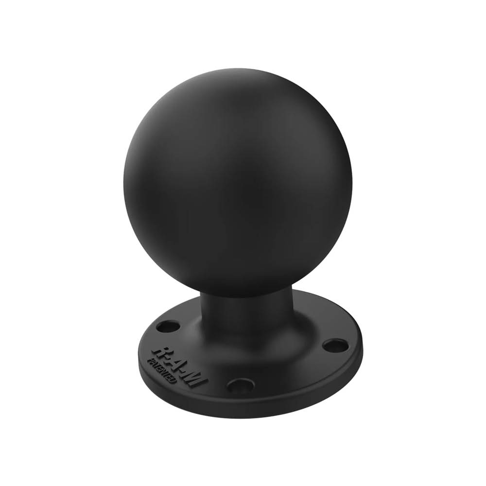 Die runde RAM Mounts Basisplatte verfügt über eine D-Kugel (2,25 Zoll), die in senkrechter Ausrichtung zur Basis mit 63,5 mm Durchmesser steht. Dabei ist das Mittelstück für zusätzliche Stabilität stahlverstärkt.
