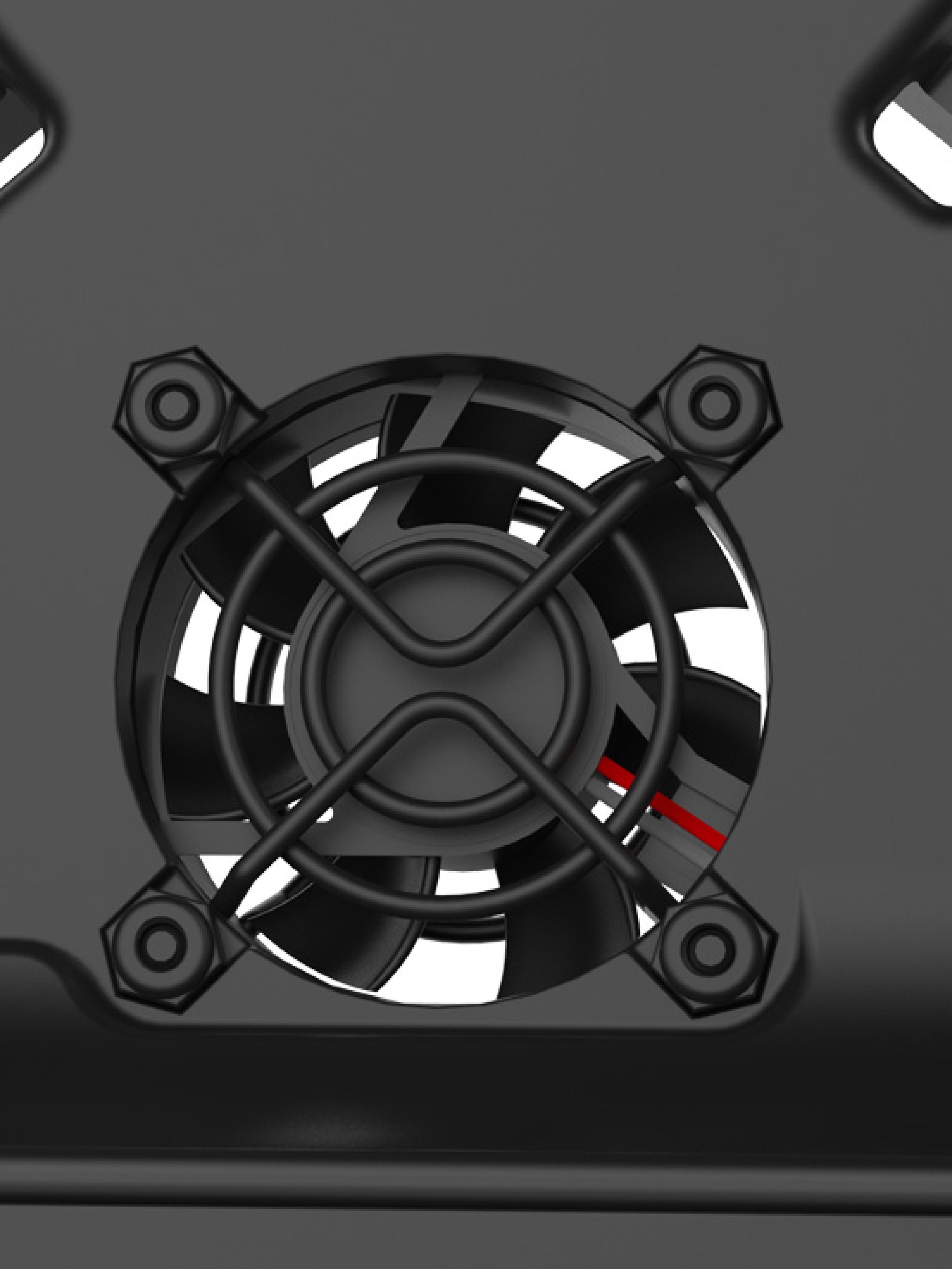 The holder is powered by a USB-C connection and charges the device in the dock including a built-in 12-VDC Axial cooling fan with a 2.2 meter long hardwire power cord.