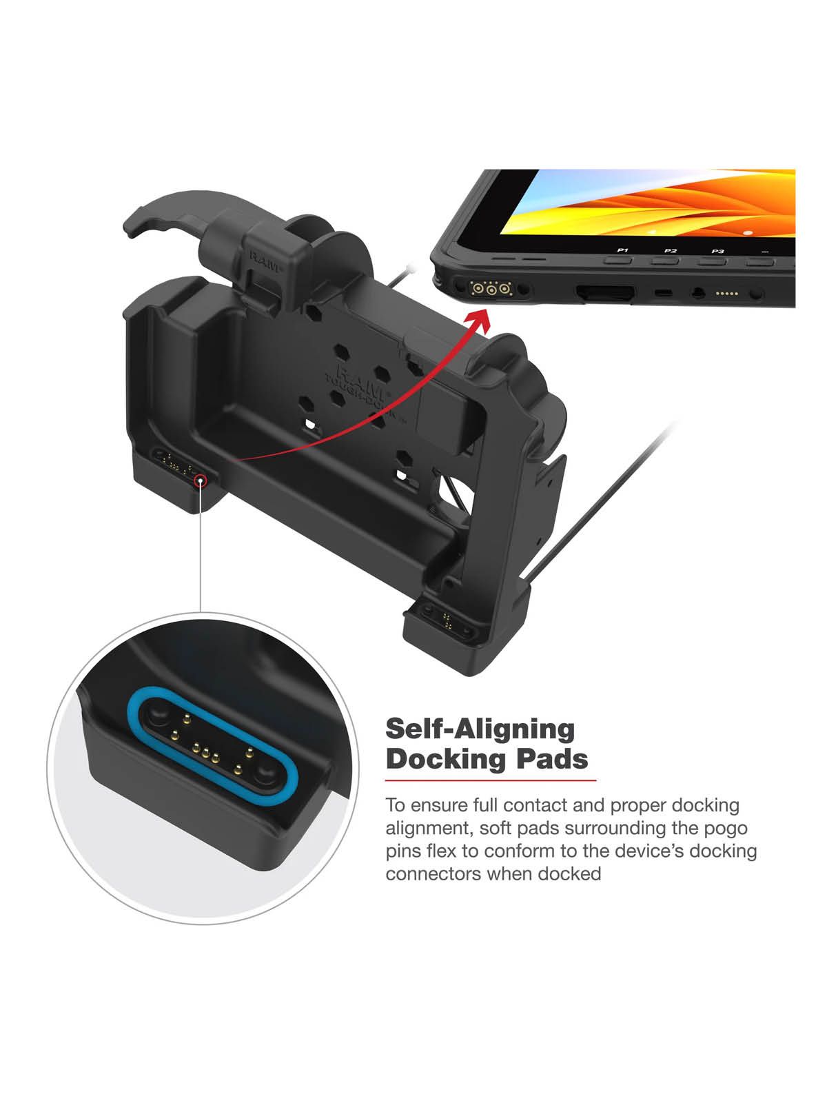 This RAM Mounts Form-Fit (key-locking) holder is suitable for Zebra ET60 & ET65 Tablets with or without Zebra Keyboard.