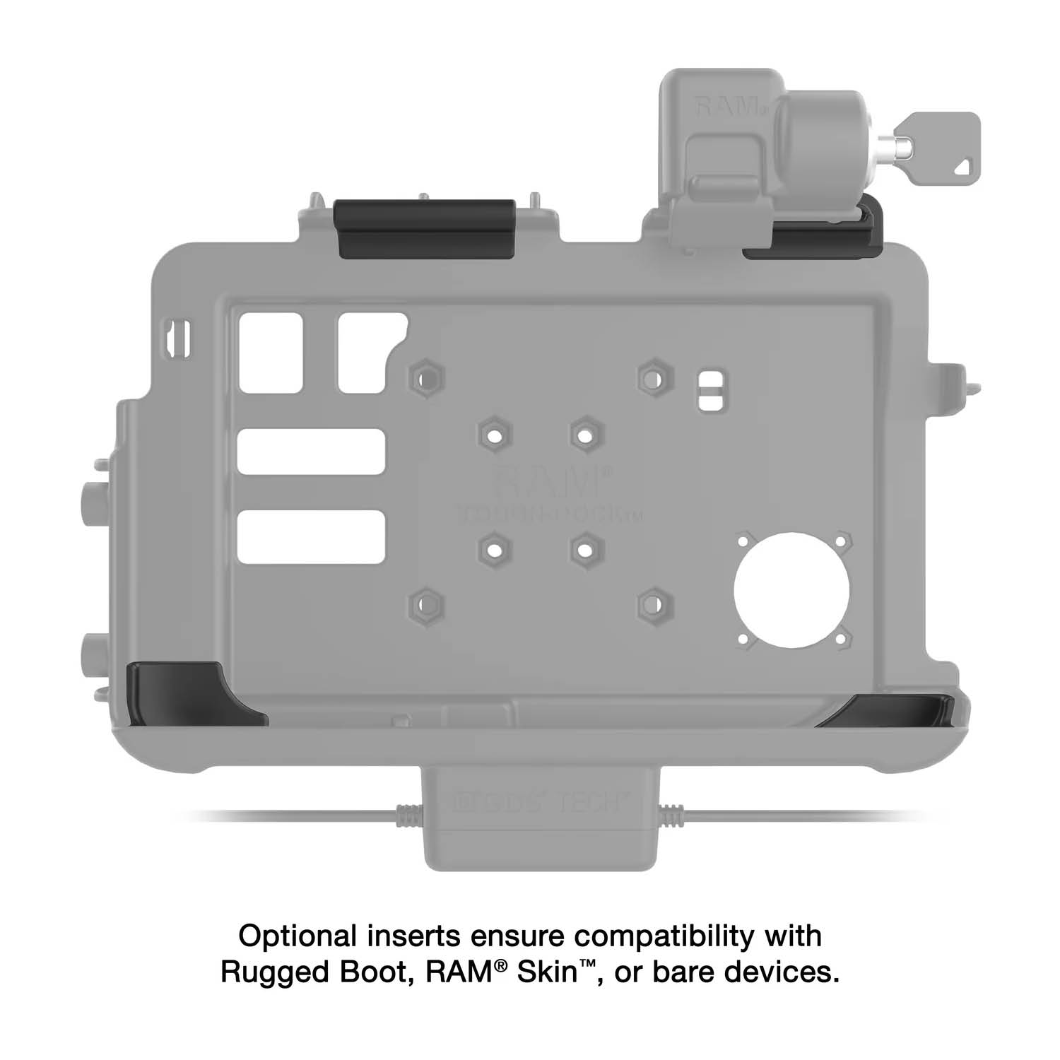 This RAM Mounts Thin-Dock (Key-locking) is compatible for the Zebra ET401 & ET4x (10“) series with or without a RAM Skin or the Zebra Rugged Boot.