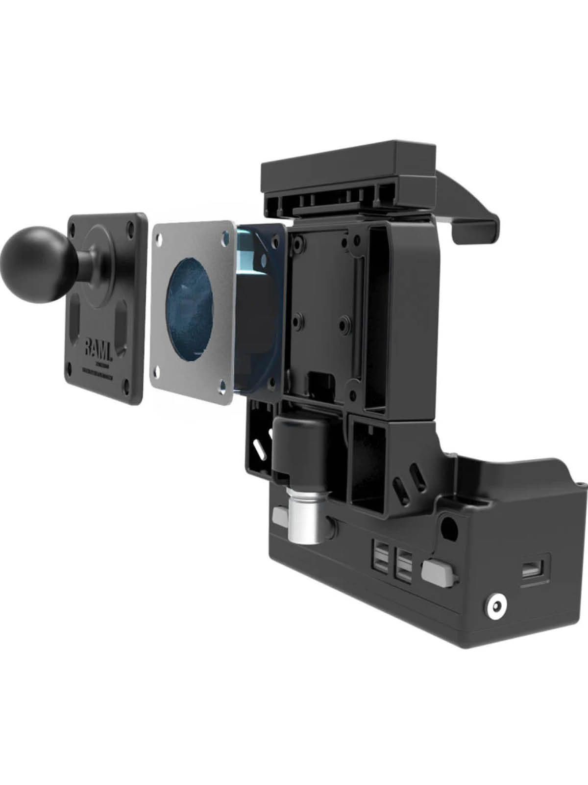 With its integrated elastomer shock absorber, the adapter acts as a buffer between RAM Mounts components with a 75x75 mm VESA hole pattern and the mounted device.