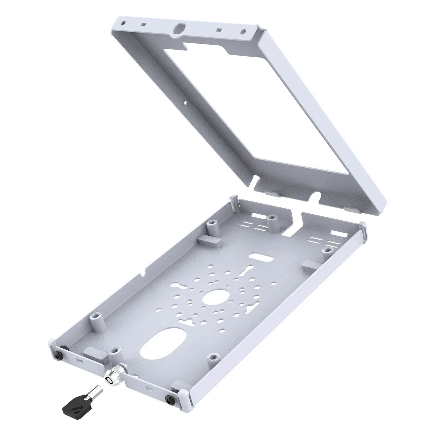The smooth gray finish not only blends well into professional and industrial settings but also adds a clean, modern aesthetic. The enclosure features versatile mounting options with integrated hole patterns for flush mounting, compatibility with RAM® double ball mounts, or 75x75mm VESA stands.