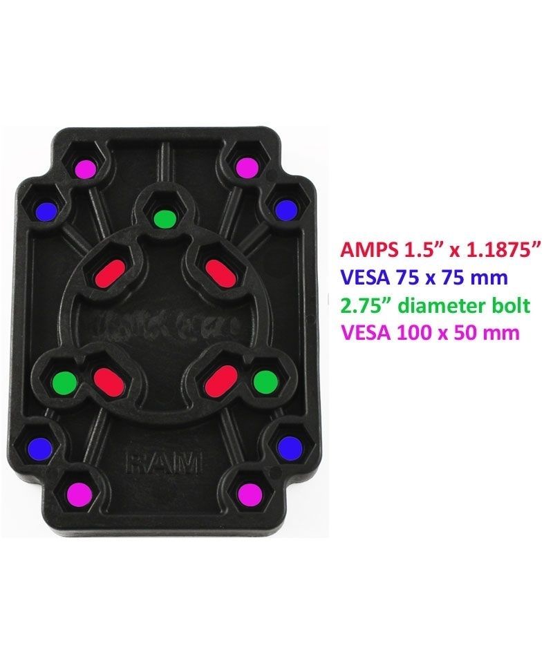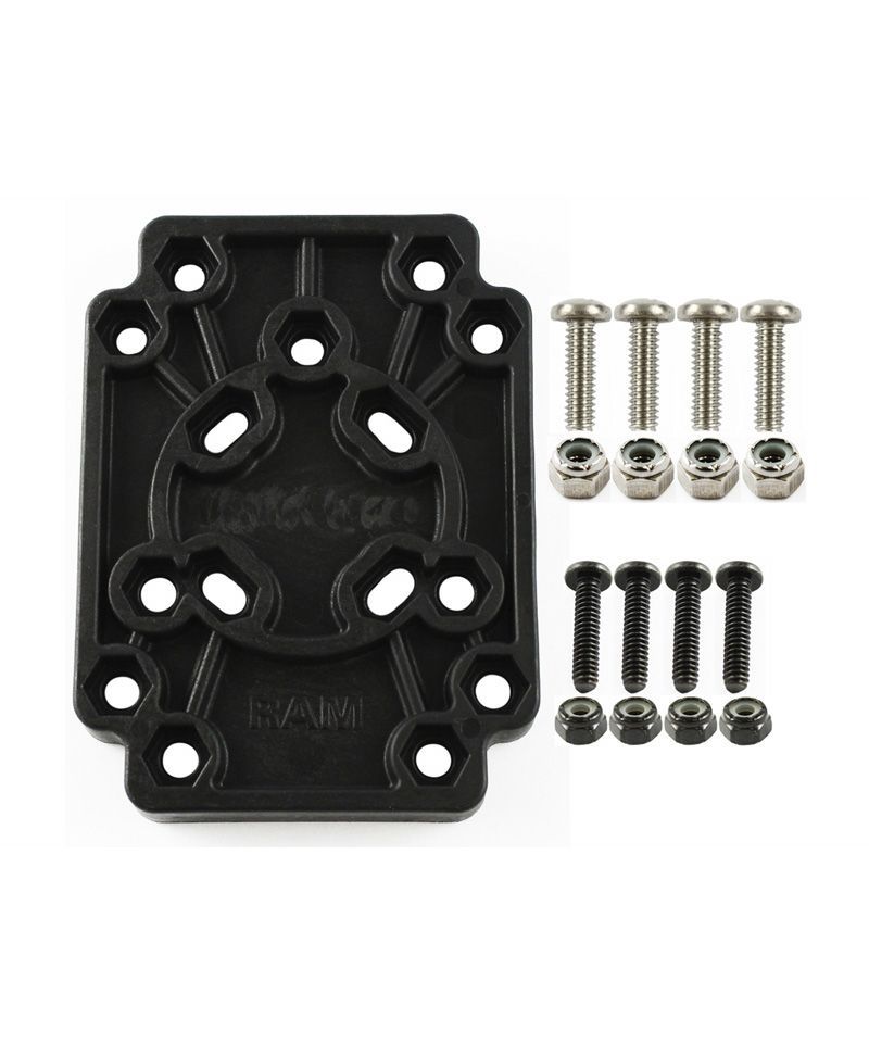Have something that you want to connect to a RAM MOUNT? Worried about hole patterns and compatibility? Well, here's your ticket to worry free mounting of almost anything. The Adapt-To-RAM™ mounting plate - RAP-356U - is a slim and simple adaptor plate with multiple hole patterns that will quickly and easily mate non-RAM products to RAM's patented mounting systems. The Adapt-To-RAM™ mounting plate is also ideal for providing power to your non-powered tablet cradle.
