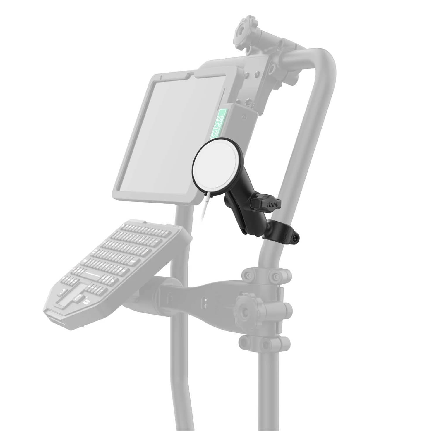 This mounting kit includes a RAM® Composite Ball Base for 1" Rails with B size medium length socket arm, perfect for the RAM® Tough-Bar™. This product is compatible with the RAM Qi2 Wireless Charger and the newer Apple MagSafe® Charger released in 2024 and later. It is not compatible with the original 2020 MagSafe® charging puck.