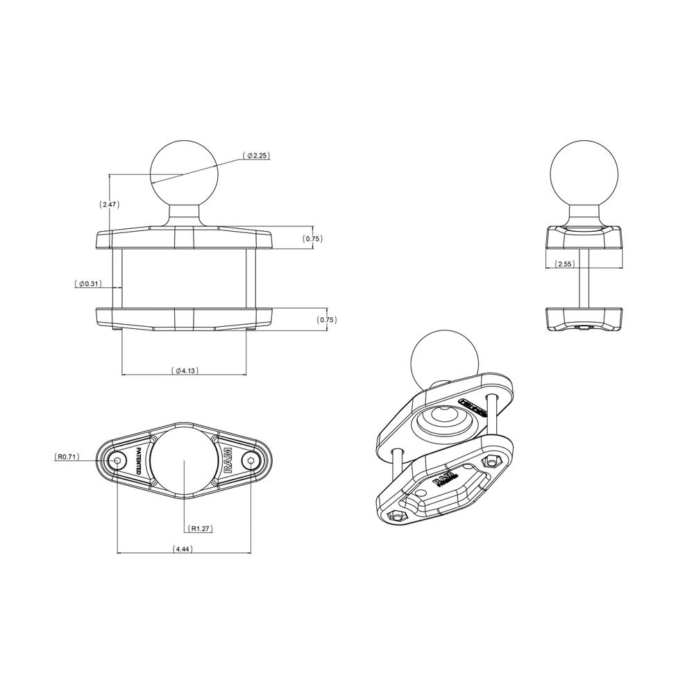 ProduktabmessungRAM Mounts RAM-D-247U-4: