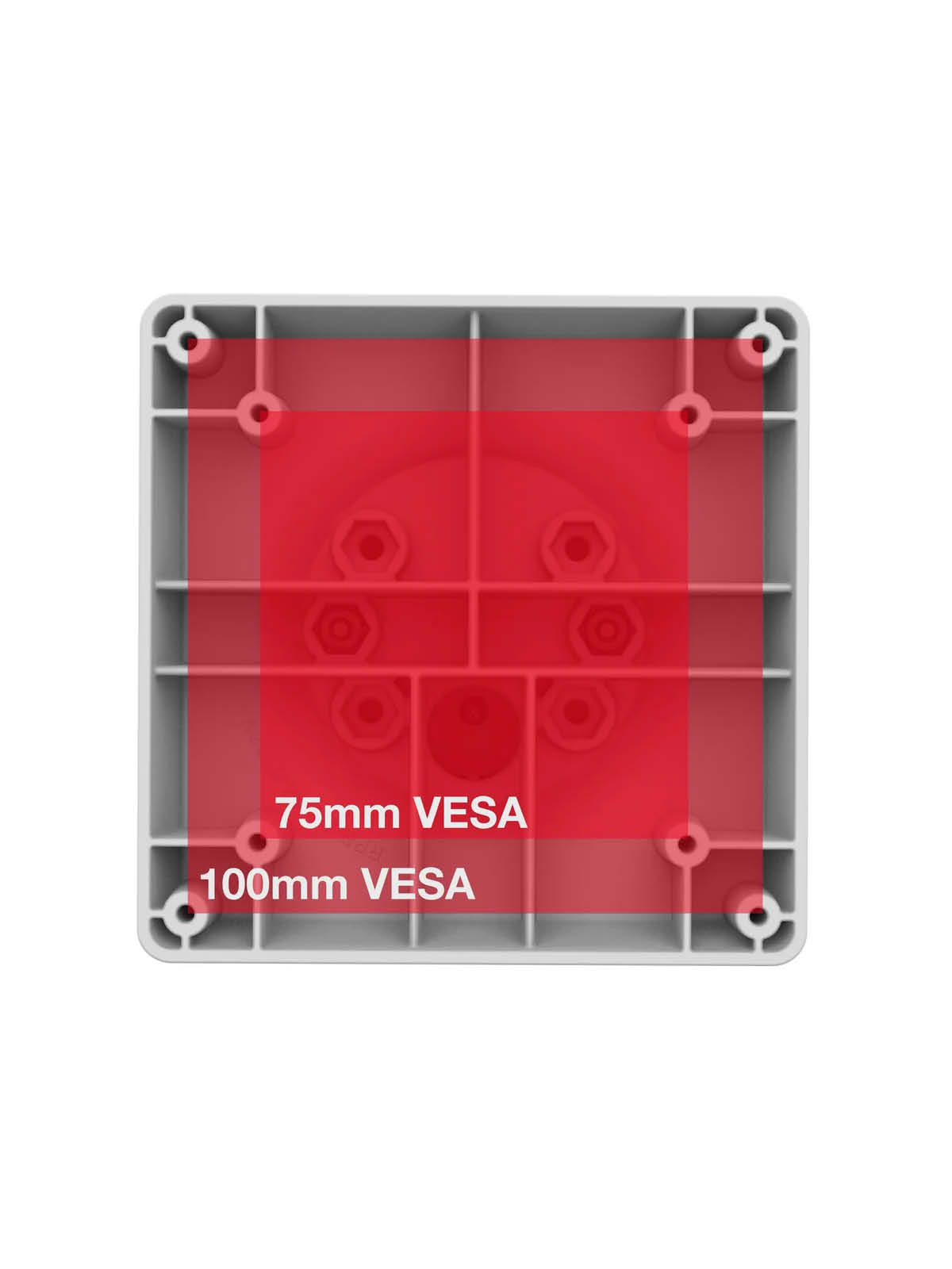 Die RAM Mounts GDS Uni-Conn Dockingstation ist eine mit Strom versorgte Halterung, die mit 100x100 mm und 75x75 mm VESA-Lochmustern ausgestattet ist.