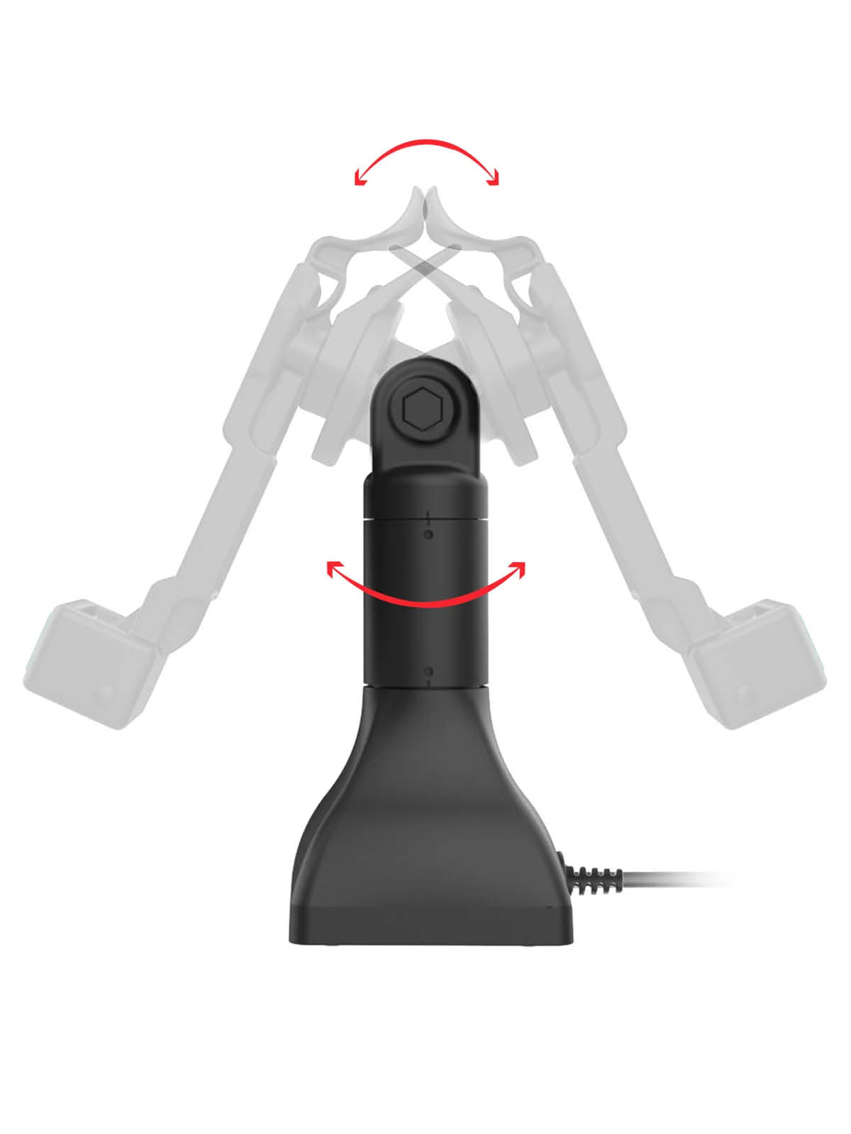 Diese Dockingstation ermöglicht eine 180-Grad-Drehung und erlaubt es den angeschlossenen Geräten, sich um 180 Grad zu neigen, was sie ideal für kundenorientierte Branchen wie Einzelhandel, Gastgewerbe und Gastronomie macht.