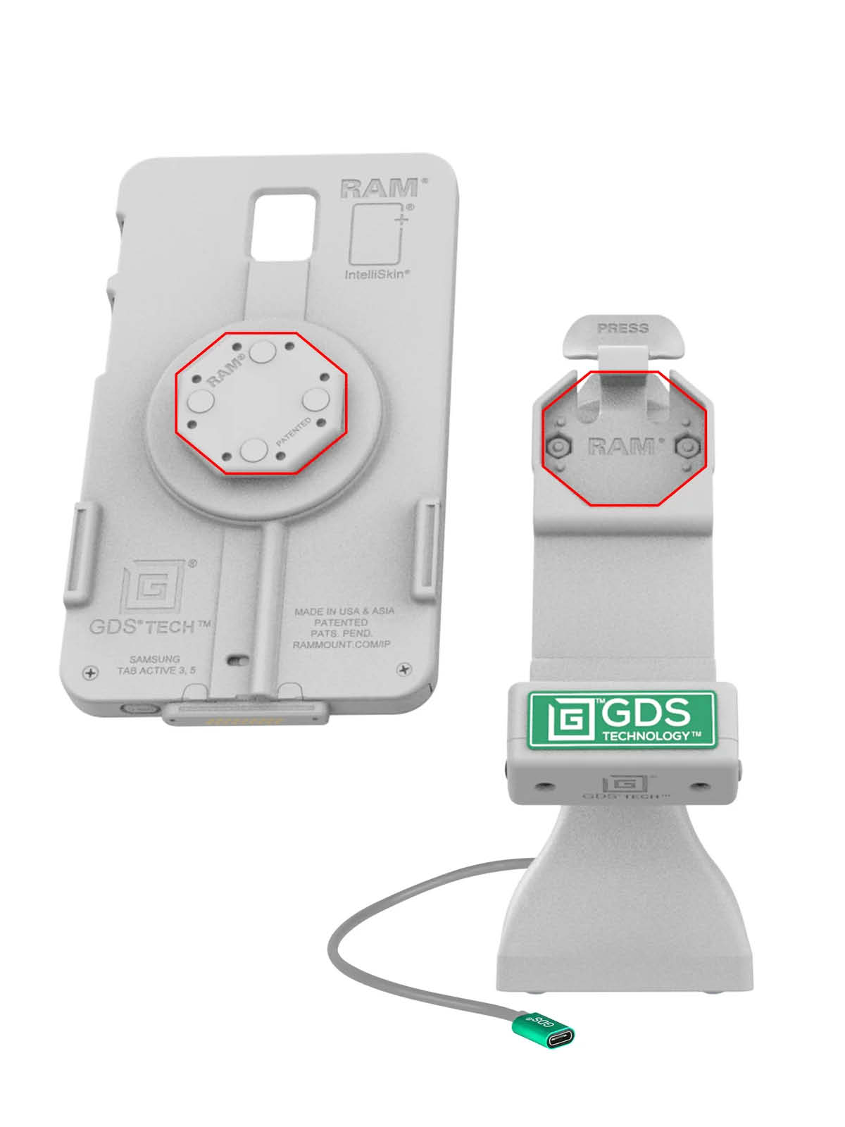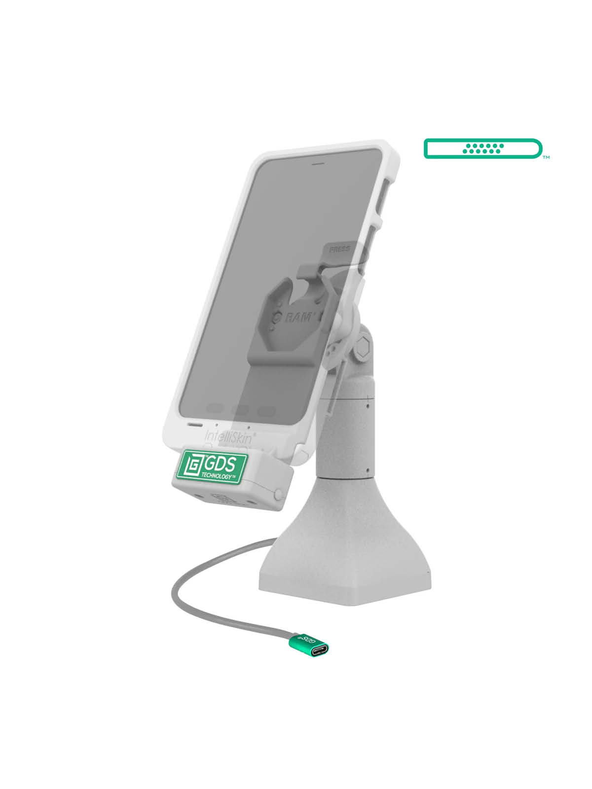 Für die Dockingstation muss der GDS Uni-Conn Adapter (RAM-GDS-U1U) auf der vorgesehenen IntelliSkin-Schutzhülle montiert sein.