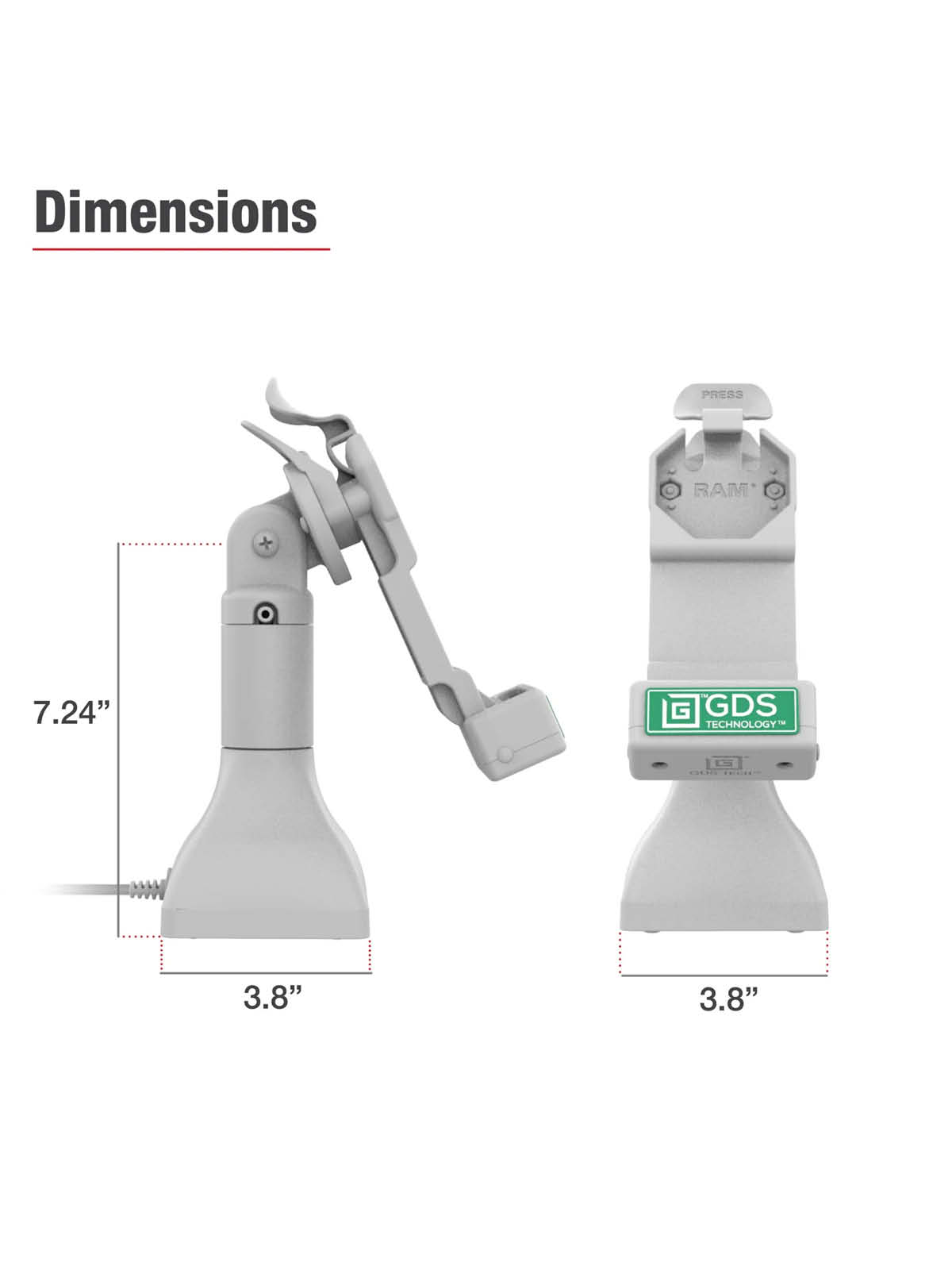 Die RAM Mounts GDS Uni-Conn Stand-Dockingstation (7 Zoll) ist eine freistehende Dockingstation und für Geräte in einer IntelliSkin Next-Gen, IntelliSkin Hard Case oder IntelliSkin Thin-Case mit montierten GDS Uni-Conn Adapter geeignet.