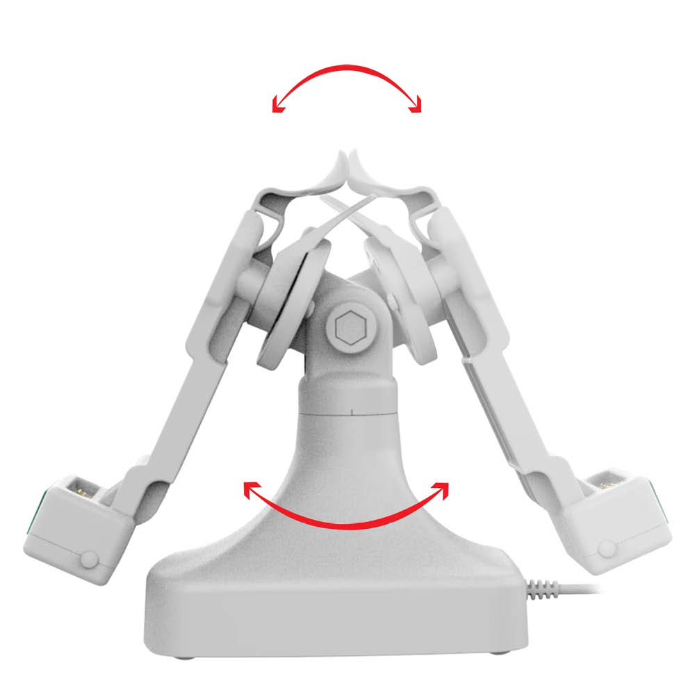 Diese Dockingstation ermöglicht eine 180-Grad-Drehung und erlaubt es den angeschlossenen Geräten, sich um 180 Grad zu neigen, was sie ideal für kundenorientierte Branchen wie Einzelhandel, Gastgewerbe und Gastronomie macht.