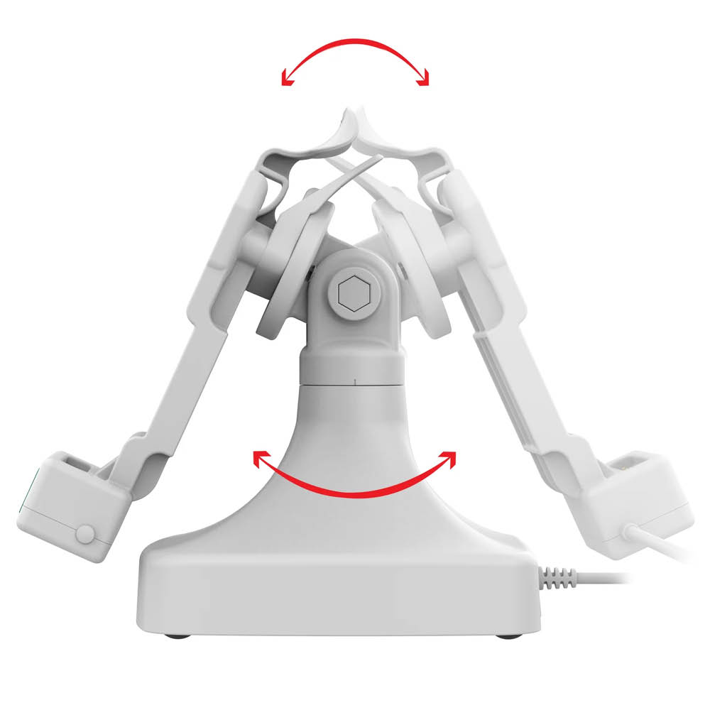 Diese Dockingstation ermöglicht eine 180-Grad-Drehung und erlaubt es den angeschlossenen Geräten, sich um 180 Grad zu neigen, was sie ideal für kundenorientierte Branchen wie Einzelhandel, Gastgewerbe und Gastronomie macht.