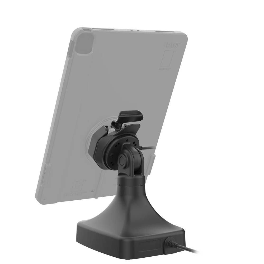 Die RAM Mounts GDS Uni-Conn Stand-Dockingstation ist eine freistehende Dockingstation und für Geräte in einer IntelliSkin Thin-Case mit rückseitigen Pogo-Pads geeignet.