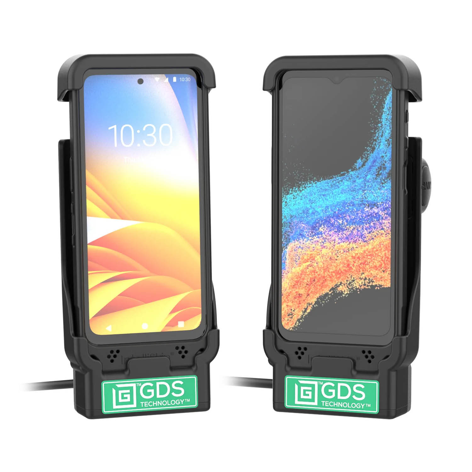 Diese RAM Mounts GDS Halteschale ist für das Zebra EM45, Samsung XCover7 Pro & XCover6 Pro mit der IntelliSkin Schutzhülle (ohne USB-C-Anschluss) geeignet.