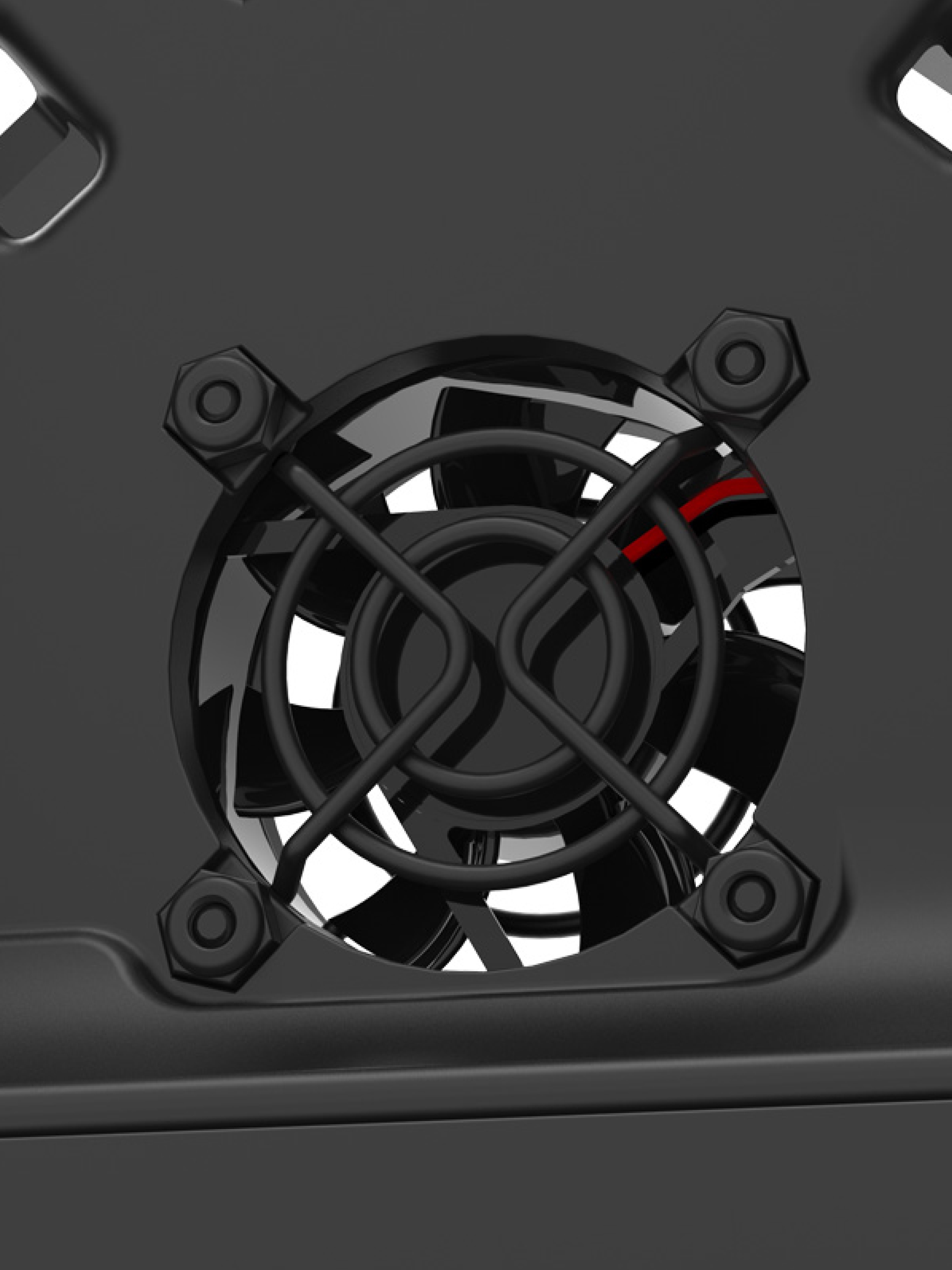 Der integrierte 12-VDC Axial Lüfter unterstützt die Kühlung des Geräts.