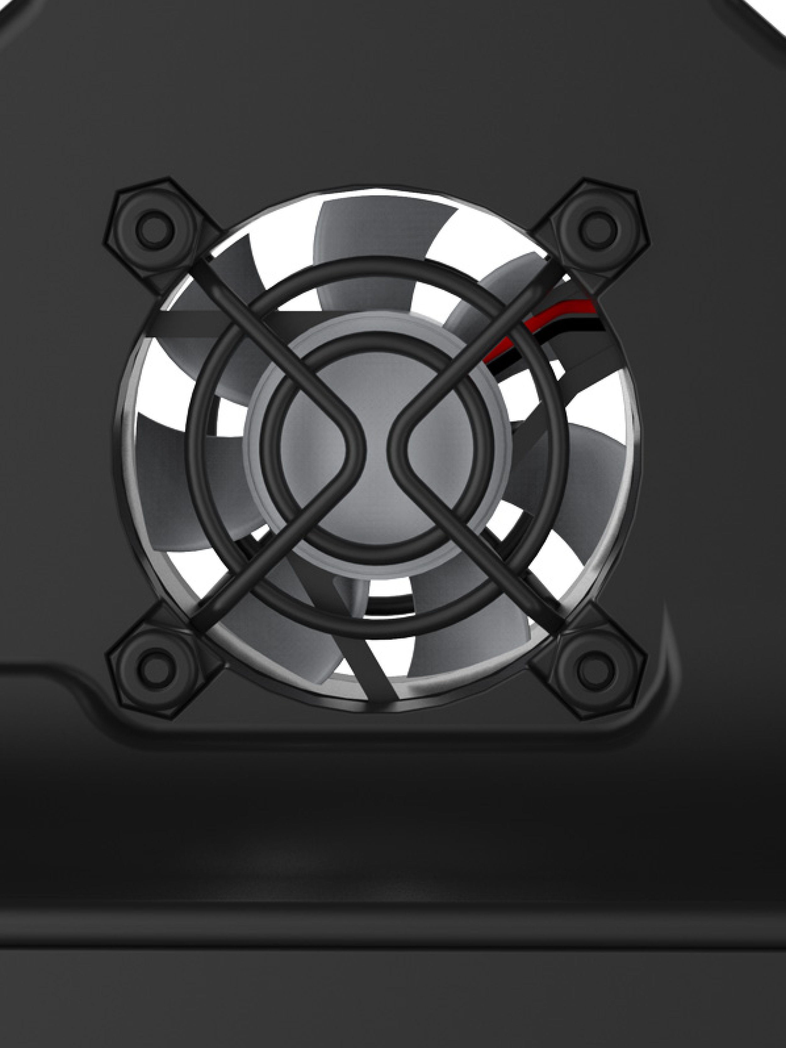 Der integrierte 12-VDC Axial Lüfter unterstützt die Kühlung des Geräts.