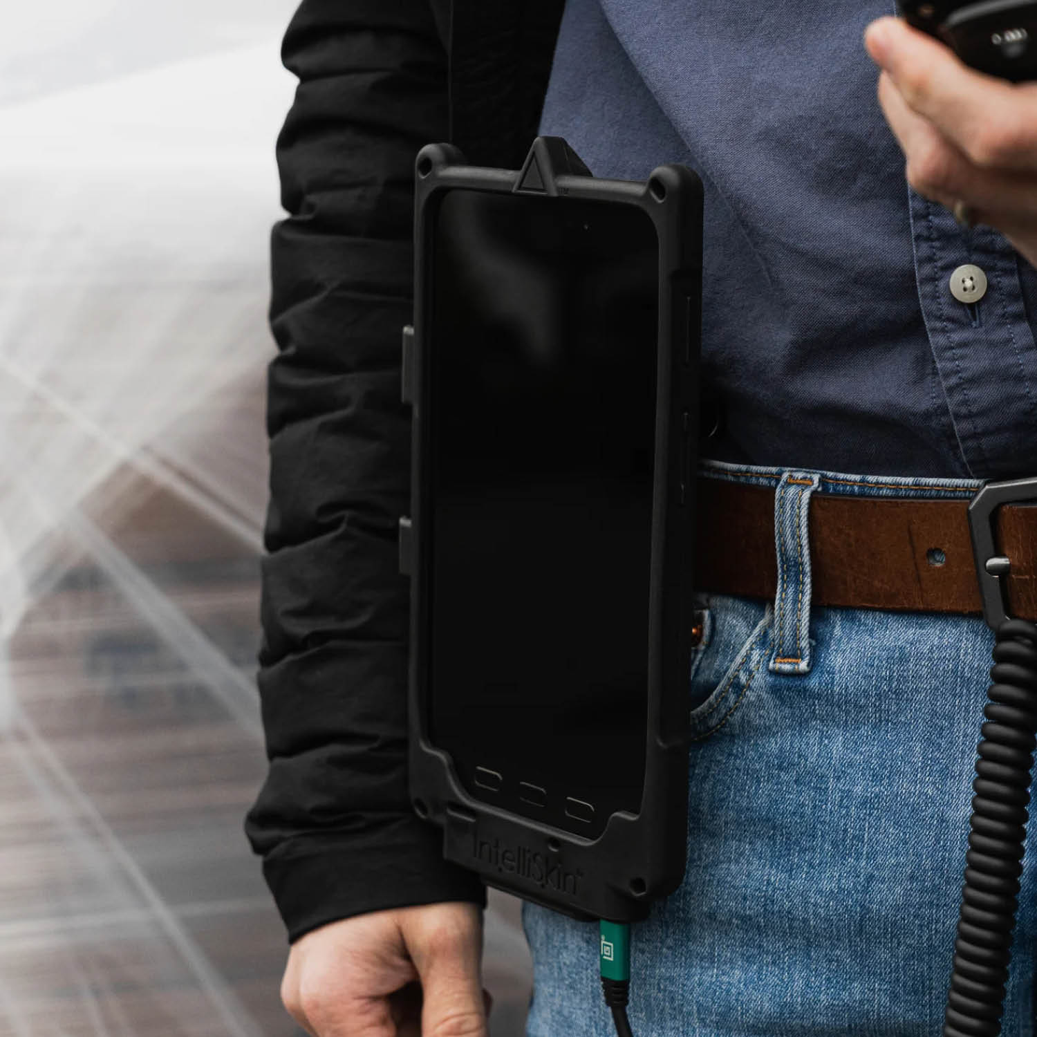 The RAM® Belt Clip Holder with Release Button for GDS® Uni-Conn™ Button (RAM-HOL-BC-U1U) enables workers to go hands-free and position their device for quick access on their belt. The universal Uni-Conn™ design securely snaps in smartphones, tablets, and handheld computers wrapped in IntelliSkin® with a Uni-Conn adapter - powered or non-powered. When it’s time to move, a simple lever press allows for quick, one-handed device removal.