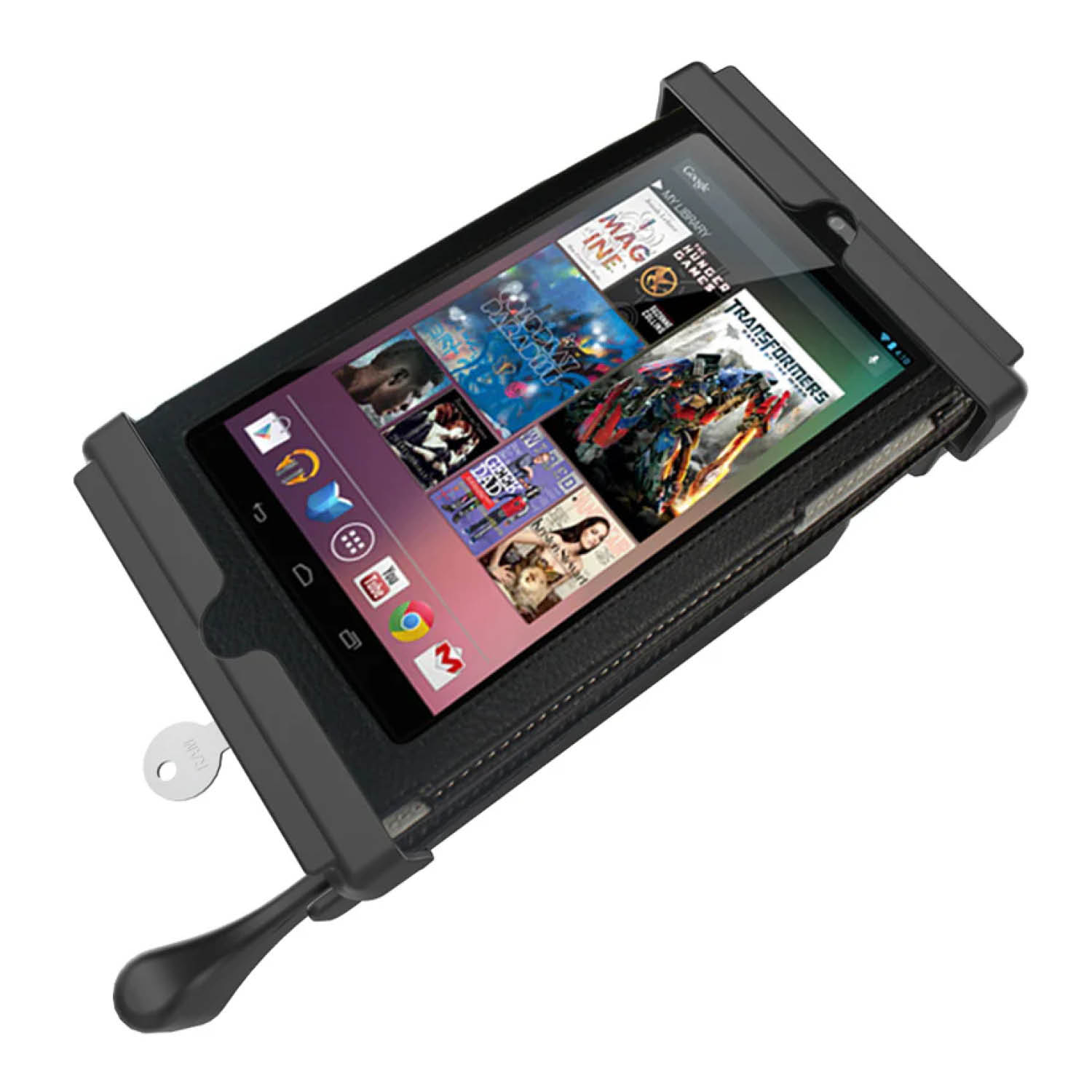Diese RAM Mounts Tab-Lock™ (abschließbare) universal Halteschale ist für das Google Nexus 7 mit Schutzhülle und weitere Tablets bis zu 7 Zoll geeignet.