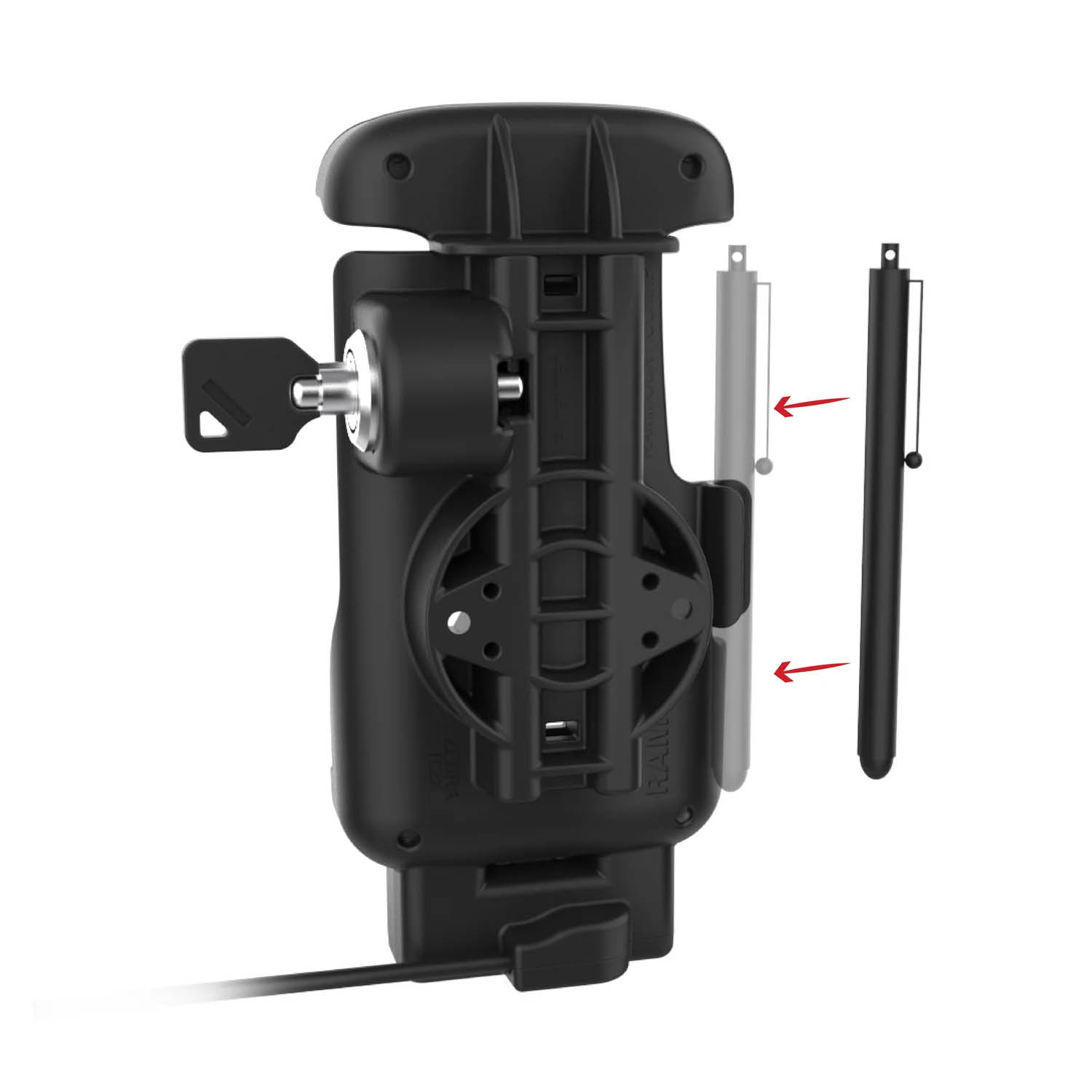 RAM Mounts Form-Fit Halteschale (Schlüsselverriegelung) für Zebra TC22 & TC27 mit Scannerzugang - Ohne Rugged Boot - USB-C-Anschluss - 2-Loch AMPS