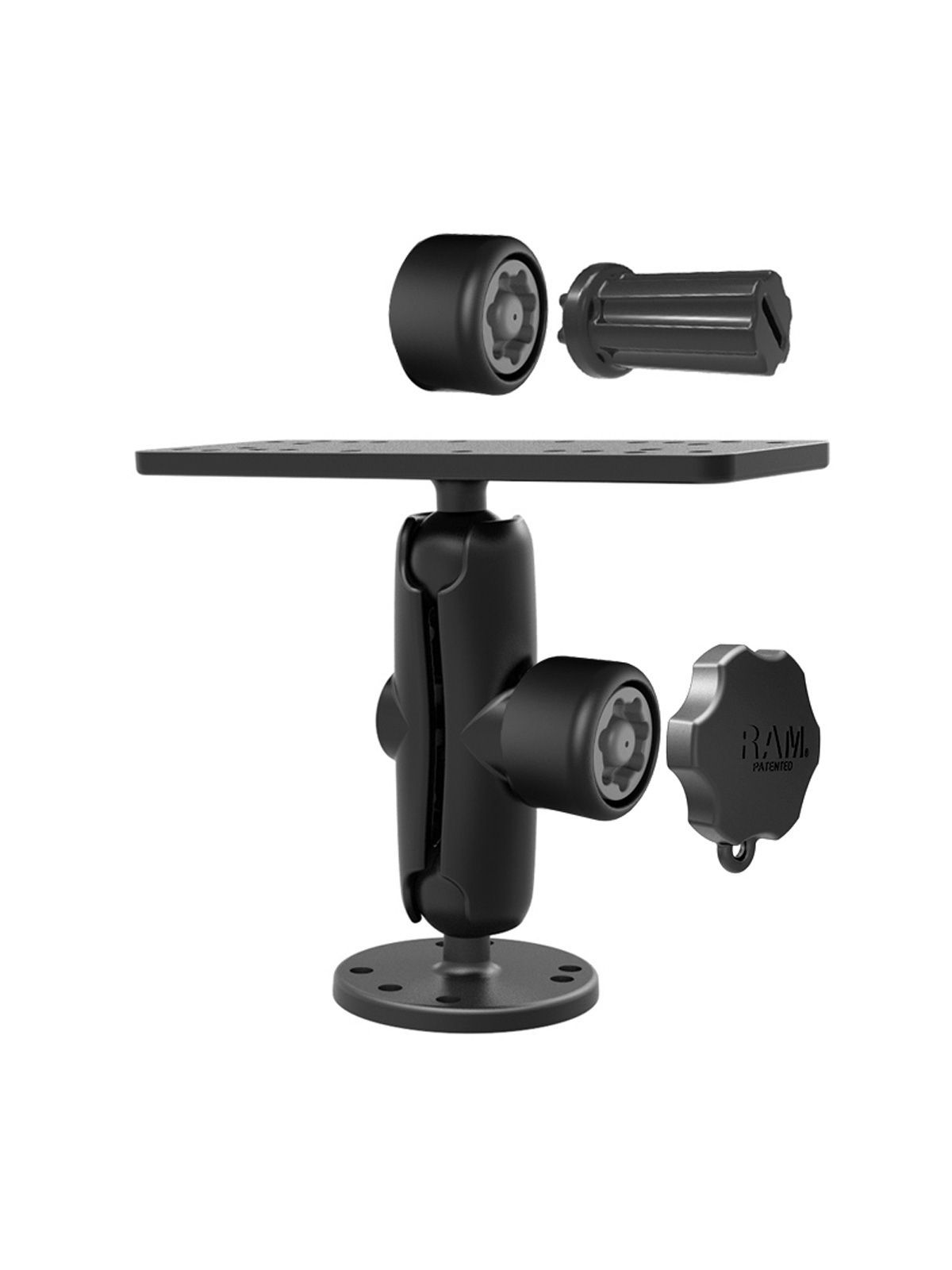RAM Mounts Marine Aufbau-Halterung Gimbal - C-Kugel (1,5 Zoll), runde Basisplatte (AMPS), mittlerer Verbindungsarm, Pin-Lock Sicherungen