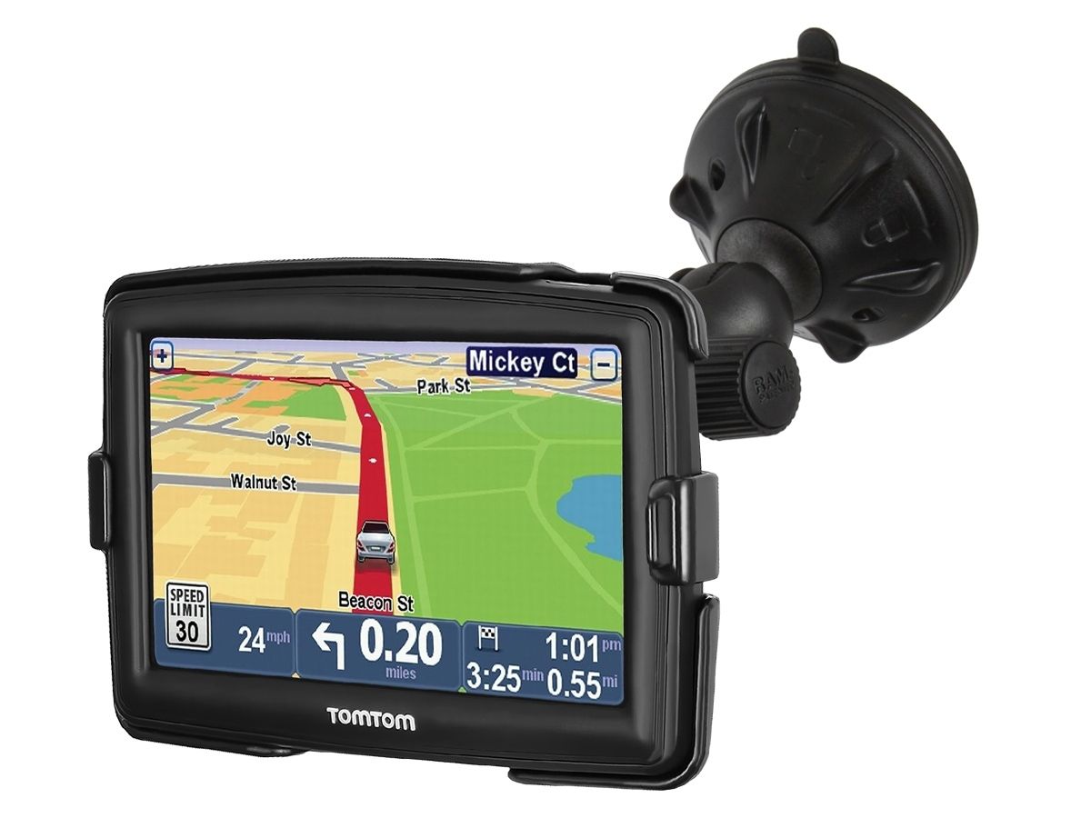 RAM Mounts Verbundstoff Saugfuss-Halterung TomTom XXL - kurzer Verbindungsarm (ca. 50 mm), Diamond-Basisplatte (Trapez), Halteschale, B-Kugel (1 Zoll)