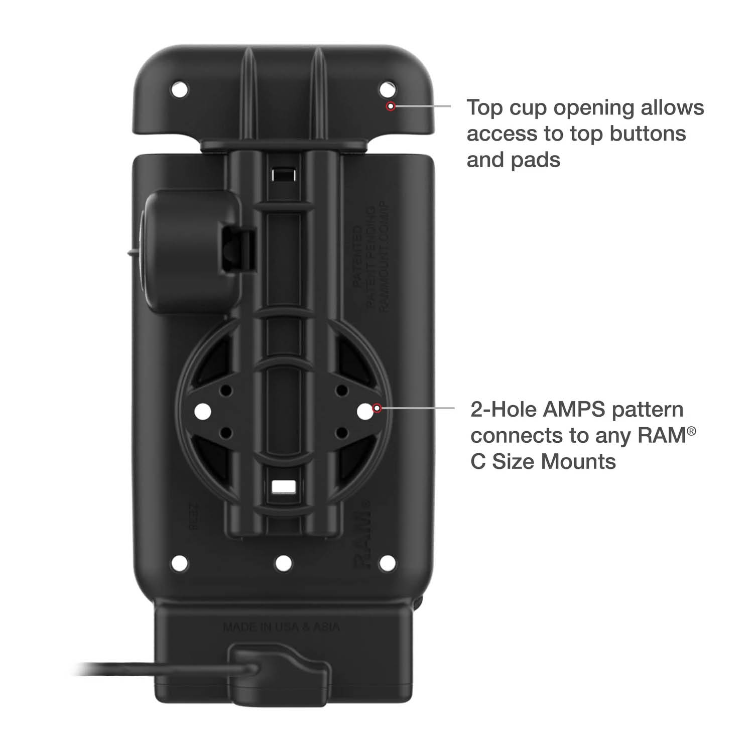 RAM Mounts GDS Universal Fahrzeug-Ladehalteschale für Handhelds in IntelliSkin Schutzhülle (mit externen USB-C-Anschluss) - USB-C-Anschluss - 2-Loch AMPS - GDS Technologie