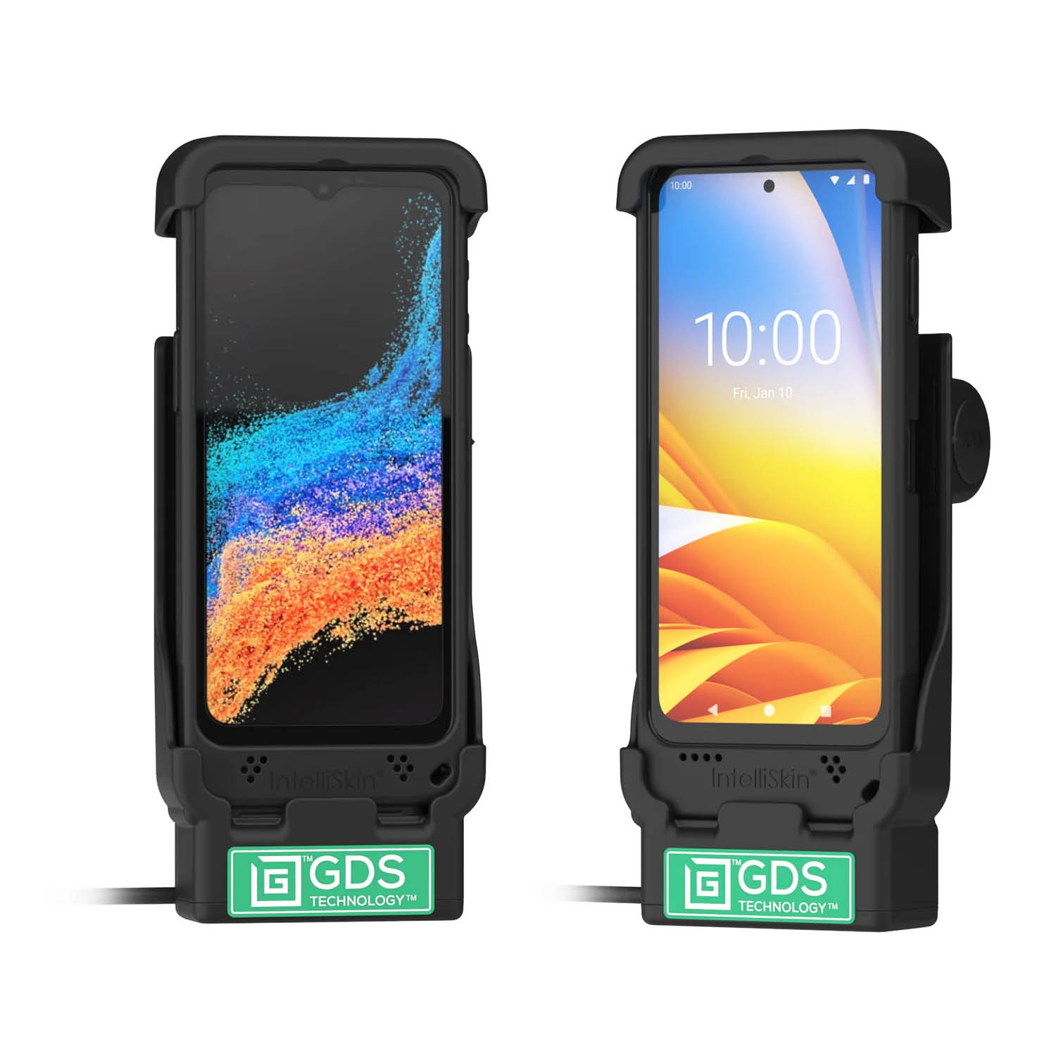 Diese RAM Mounts GDS Halteschale ist für das Zebra EM45, Samsung XCover7 Pro & XCover6 Pro mit der IntelliSkin Schutzhülle (mit externen USB-C-Anschluss) geeignet.