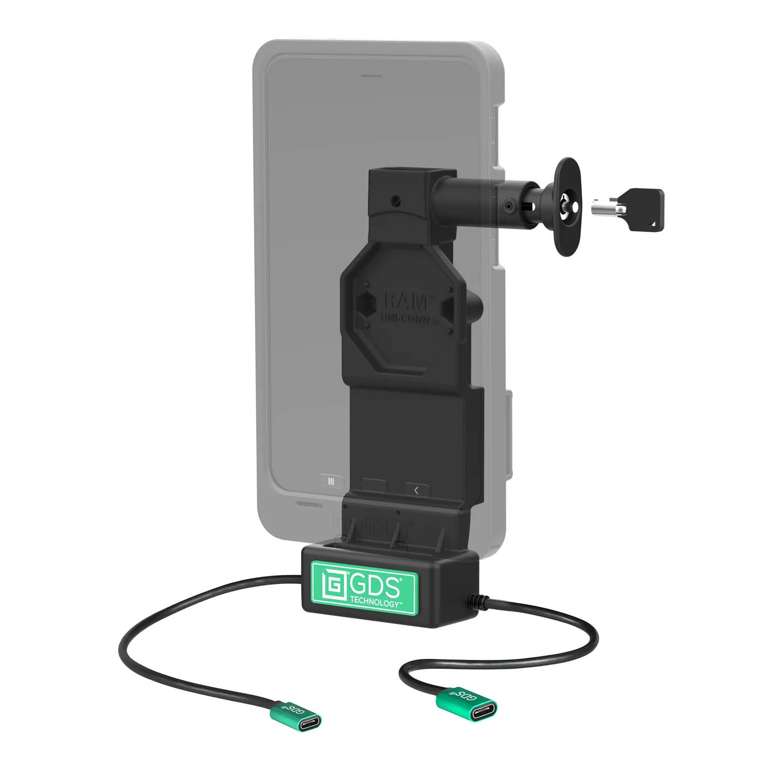 RAM Mounts GDS Uni-Conn Charging Dock (Key-Locking) with Release Button - 2-Hole AMPS - USB-C & USB-C Connector - Screw Set