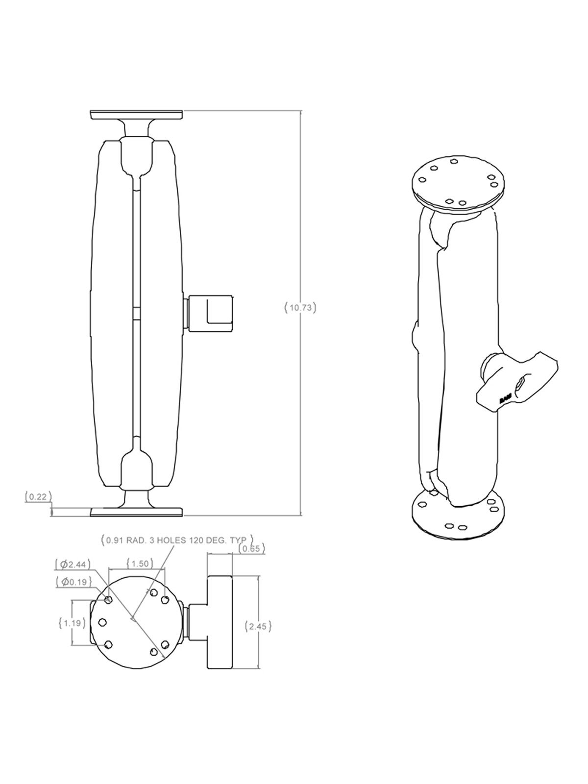 ·Verbindungsarm: 231,78 mm Gesamtlänge, 203,2 mm Sockel-zu-Sockel Länge, Aufnahmen für C-Kugeln (1,5 Zoll)