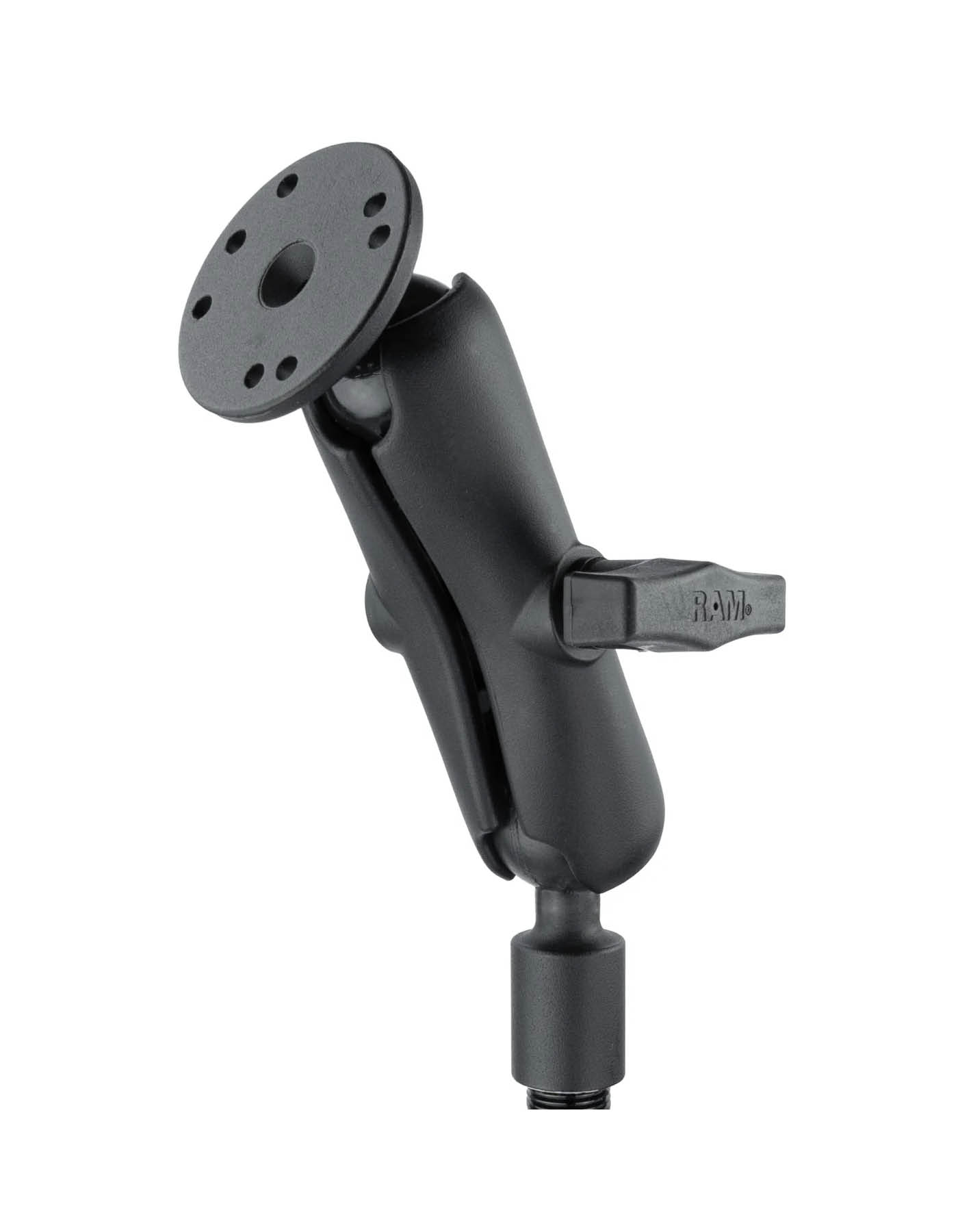 RAM Mounts Pod HD Universal Fahrzeughalterung mit AMPS-Anbindung mit zusätzlichem Standfuss - Ratchet-System (revers), max. 80 cm hoch, mittlerer Verbindungsarm, runde Basisplatte, C-Kugel (1,5 Zoll)