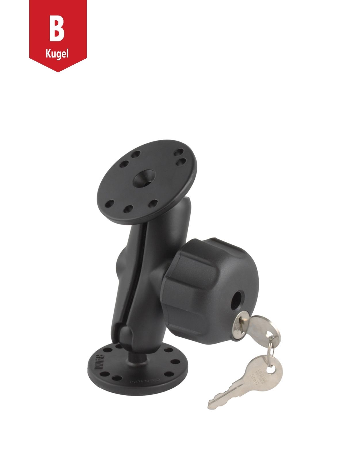 RAM Mounts Set mit Sicherungsschloss - B-Kugel (1 Zoll), 2x runde Basisplatte (AMPS), mittlerer Verbindungsarm