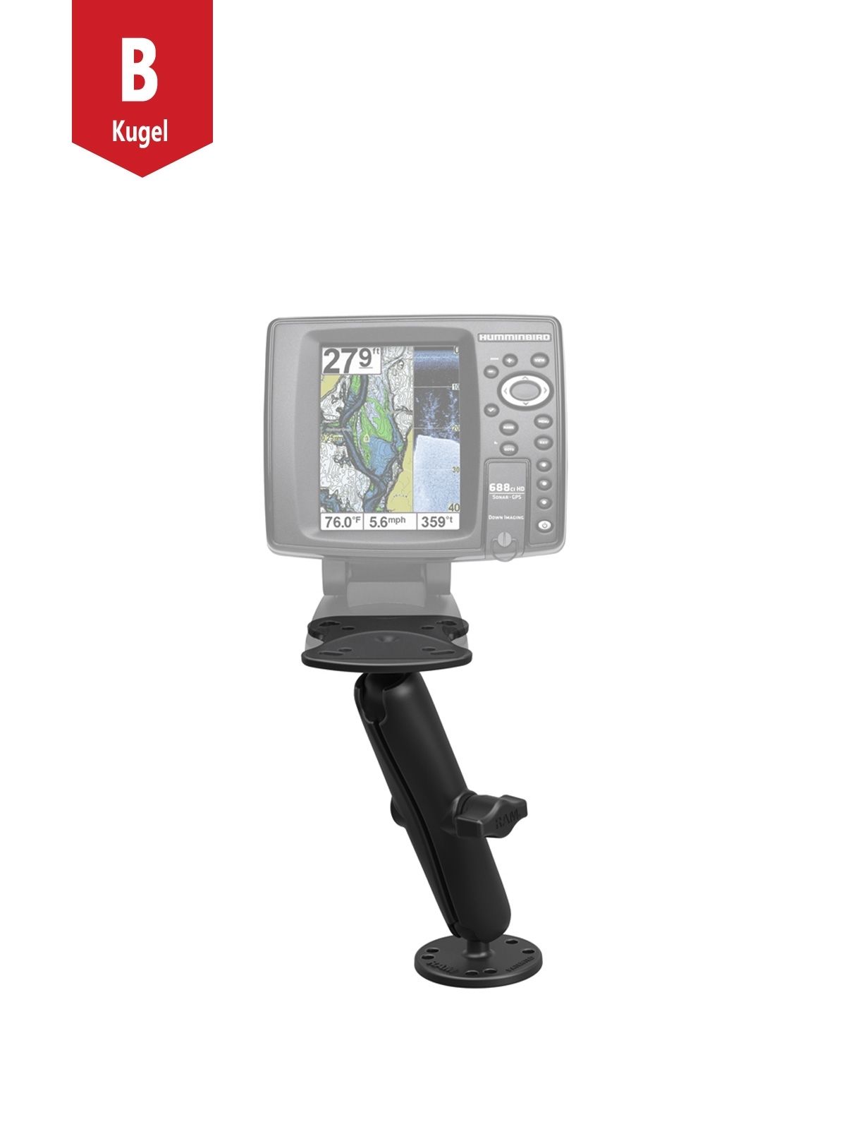 RAM Mounts Marine-Aufbauhalterung Humminbird/Lowrance - B-Kugel (1 Zoll), runde Basisplatte (AMPS), langer Verbindungsarm, Adapterplatte 89,95 €*