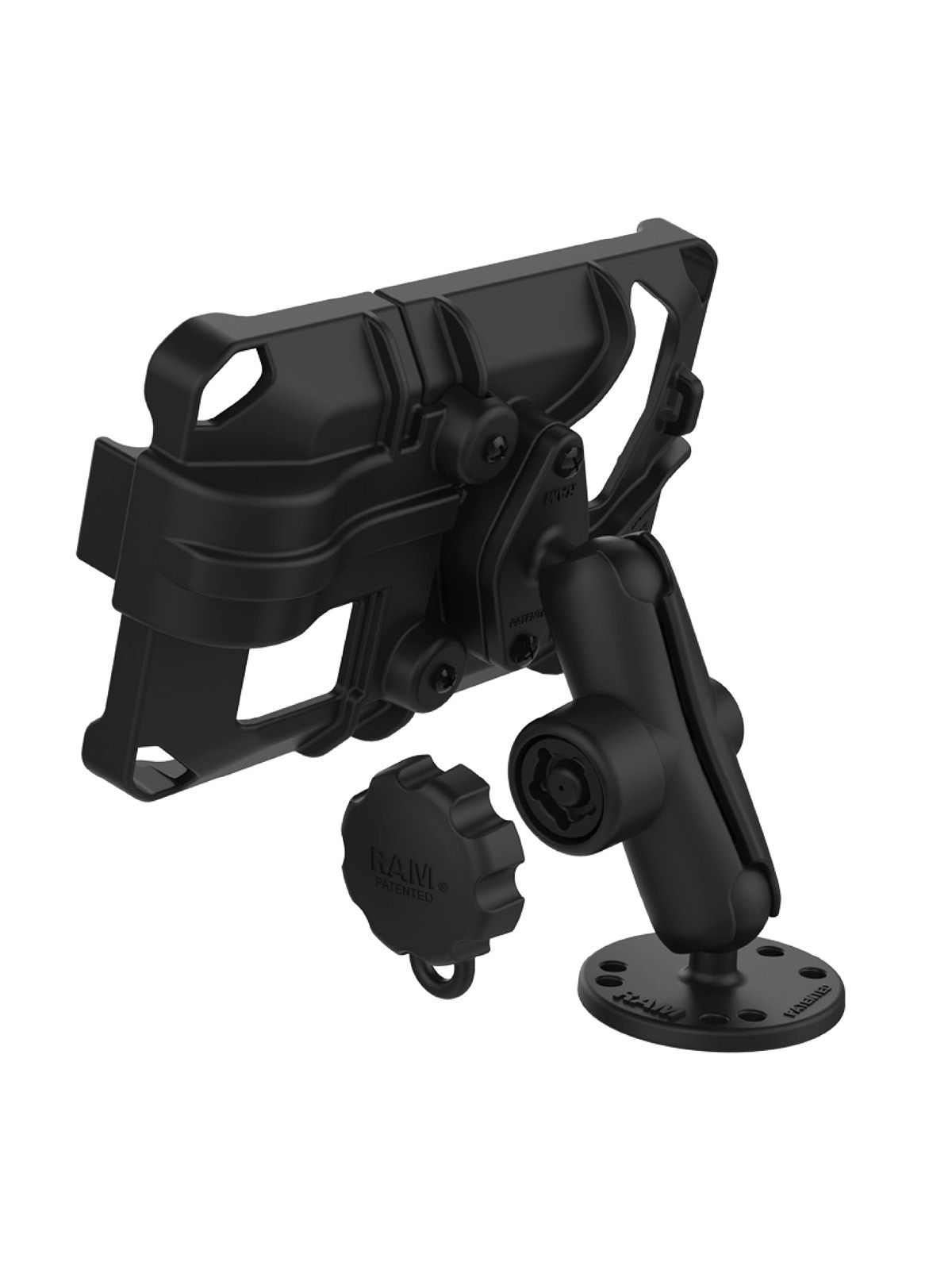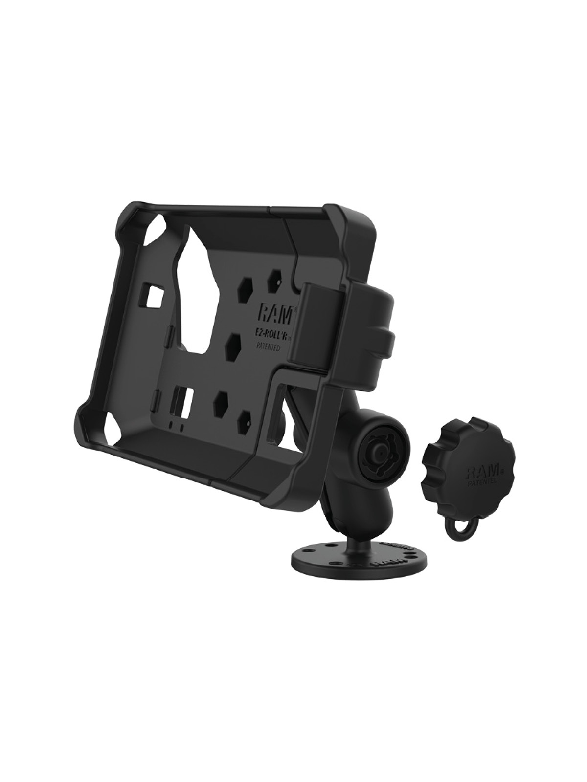 The RAM EZ-Roll'r cradle for the Garmin dzl OTR700 provides a secure fit with hardware to lock the GPS device into place. With the included cradle lock as a theft deterrent, keep the Garmin dzl OTR700 protected when left inside the vehicle. This mounting kit includes a 2.5" round base with AMPS hole pattern, RAM Pin-Lock locking double socket arm and diamond base adapter that connects to the EZ-Roll'r cradle.