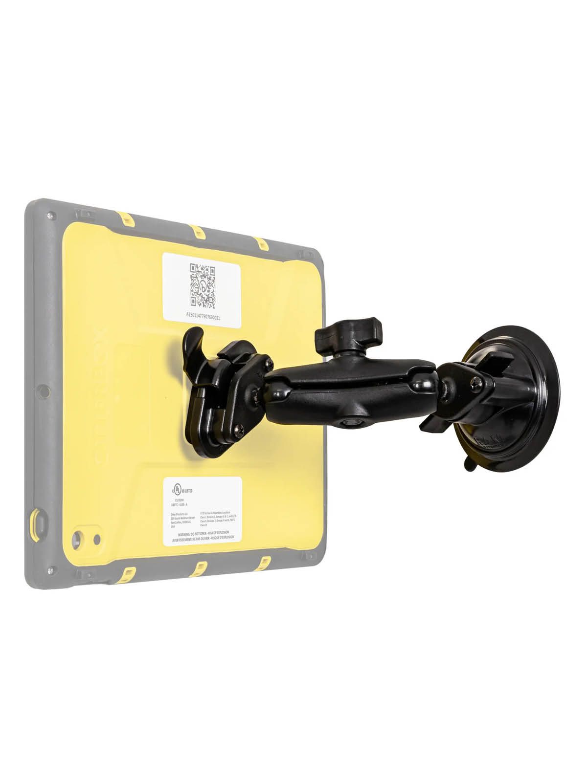 This single suction cup mount (RAM-B-166-326U) was designed in collaboration with OtterBox Hardline Series for industrial applications. This kit Includes B-size RAM® Twist-Lock™ suction cup base, medium length socket arm, and a RAM® EZY-Mount™ Quick Release Adapter for OtterBox Hardline Series. With the quick release tab, simply push the tab to dismount the tablet without having to adjust with the mount itself. The RAM-B-224-1U suction cup base consists of a 3.3" diameter RAM® Twist-Lock™ suction cup connected to a RAM-B-238U diamond base with a 1" B size rubber ball. The RAM® Twist-Lock™ suction cup base is a fan favorite for use on vehicle windshields, and provides an extra strong hold on any smooth, nonporous surface. Suction size - 3.3" Diameter Bases Socket to socket length - 3" Hole pattern - 2-Hole AMPS 1.912" Ball size - B Size (1") Weight capacity - Standard Use 2 lbs, Heavy-Duty Use 1 lb Material(s) - Marine-grade aluminum, High strength composite, Cast acrylic