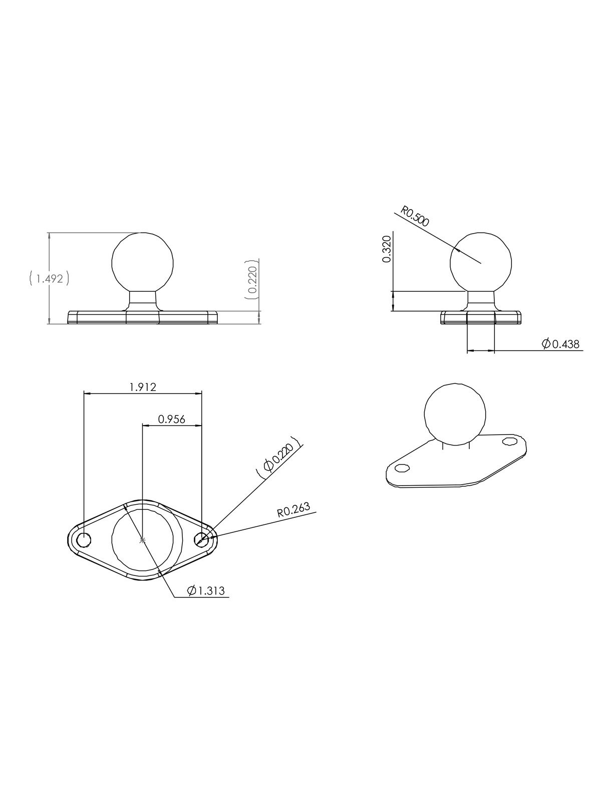 RAM Mounts Diamond-Basisplatte (Trapez) mit B-Kugel (1 Zoll) für die horizontale oder vertikale Montage. Diese Basisplatte wird oft für die Anbindung an die Gerätehalteschalen verwendet.